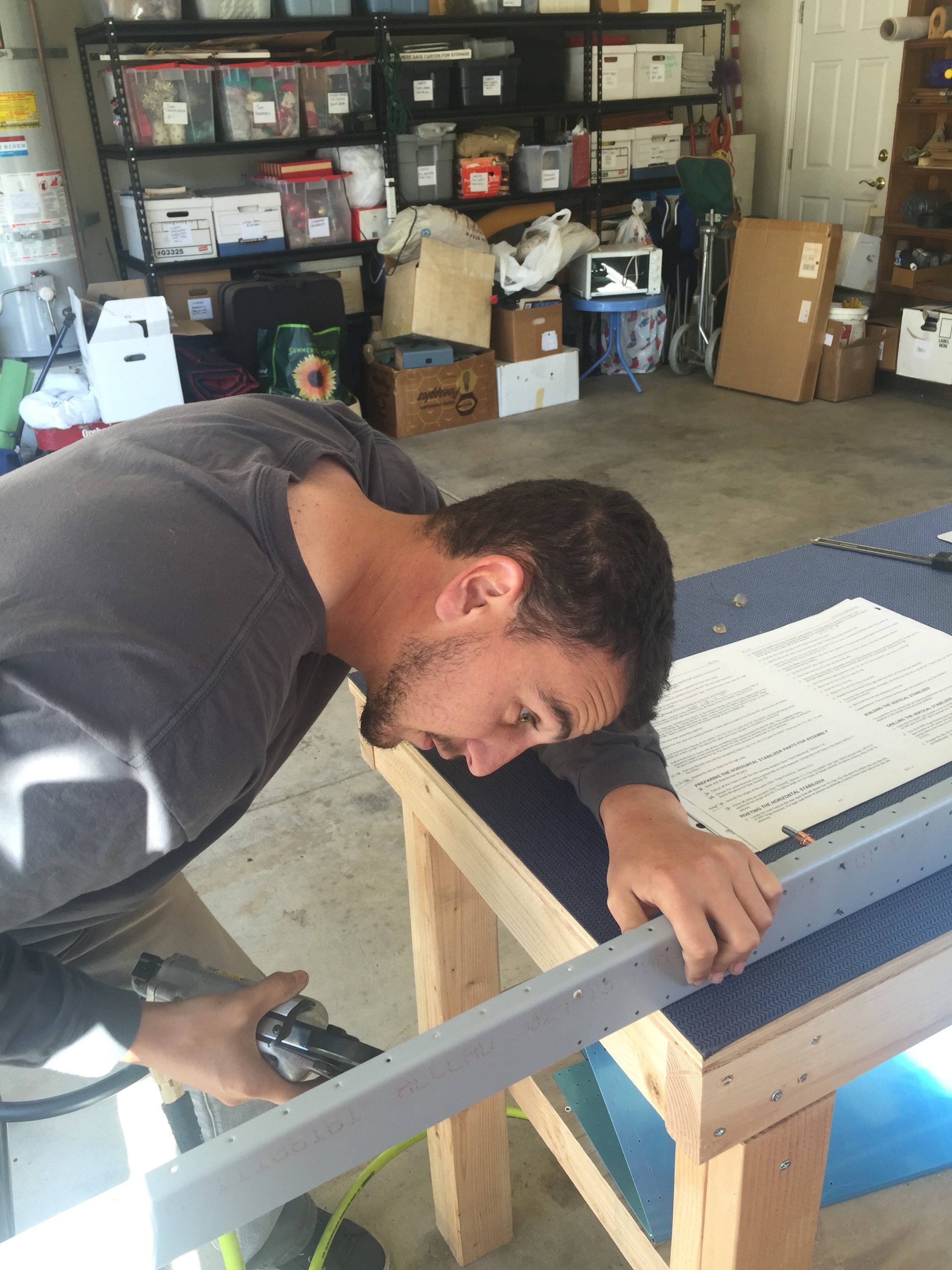 This is the first rivet set in the spar, and thus began the riveting! I will spend many days in this position for riveting