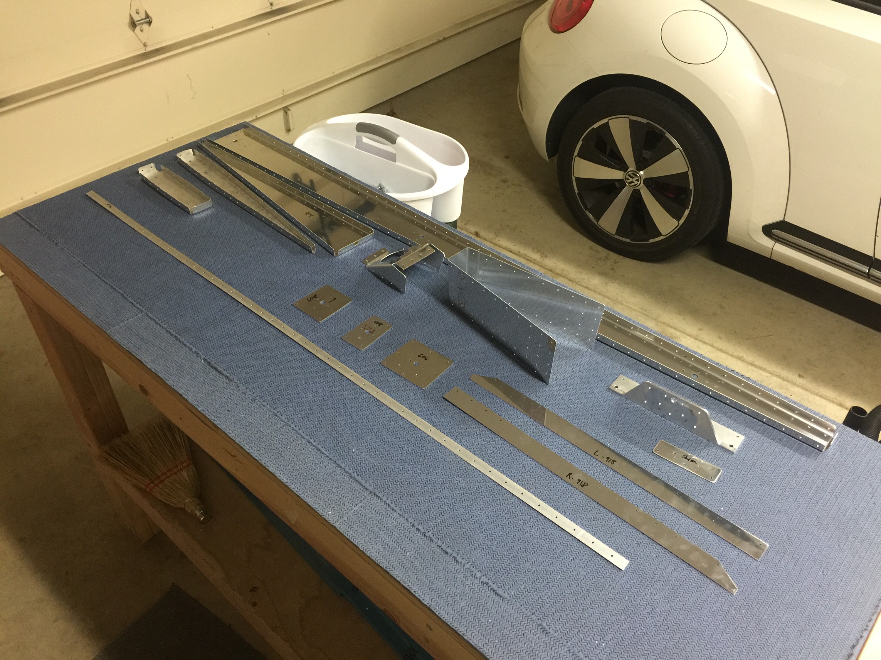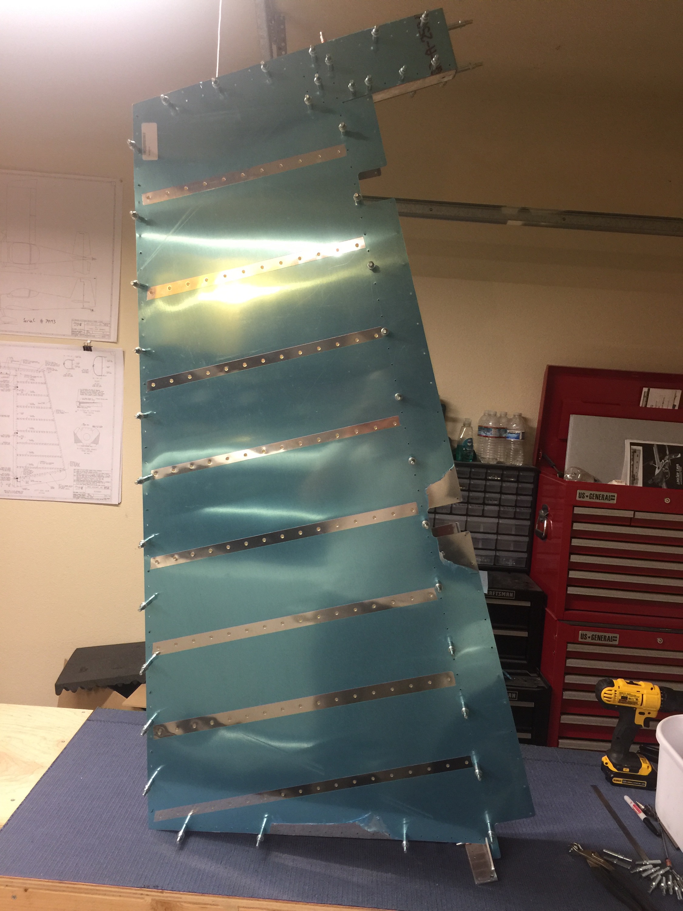 This morning I riveted all the stiffeners to the skins, even got a little help from mom on a few of the rivets. In the end all of them came out perfectly.