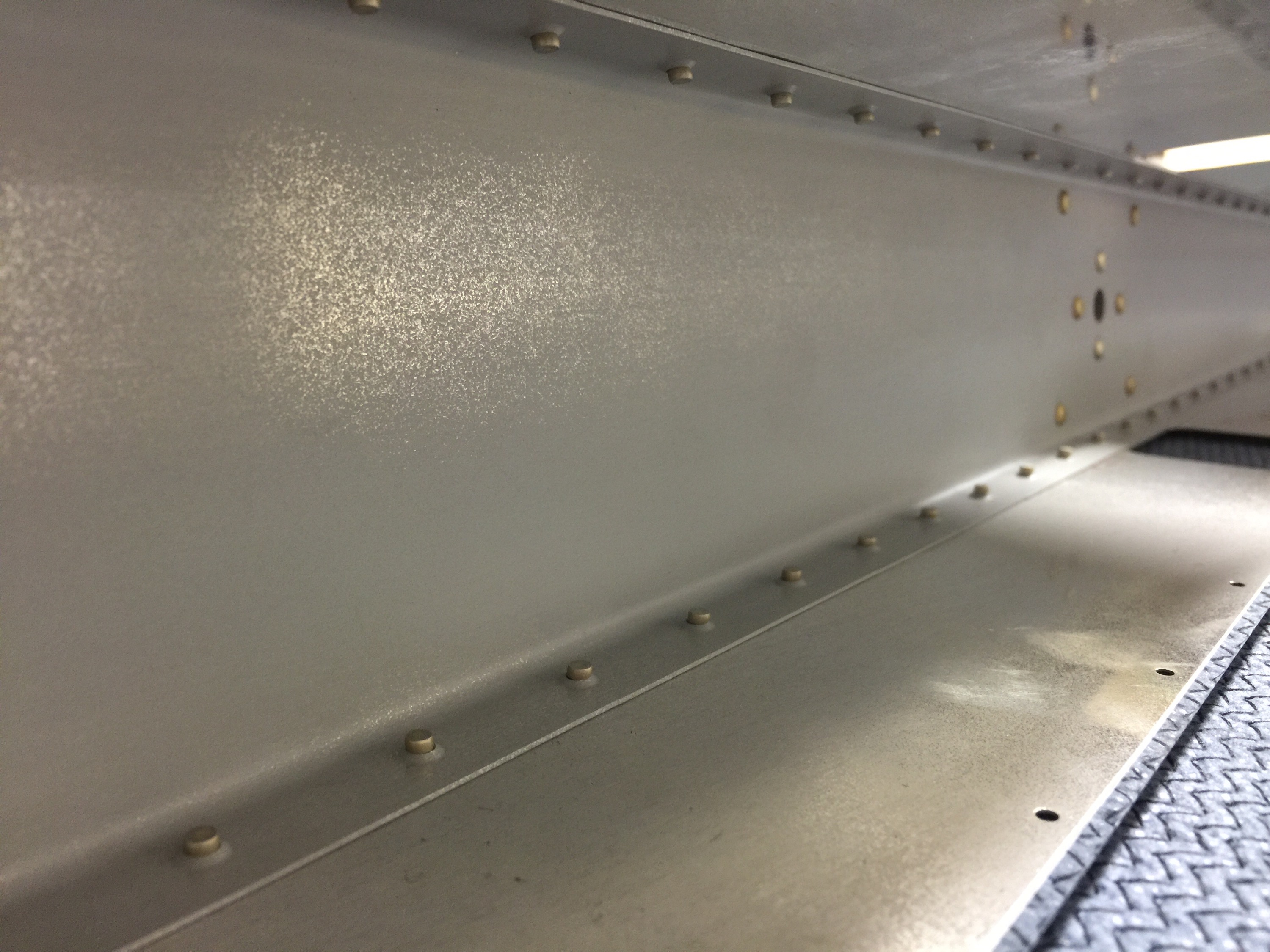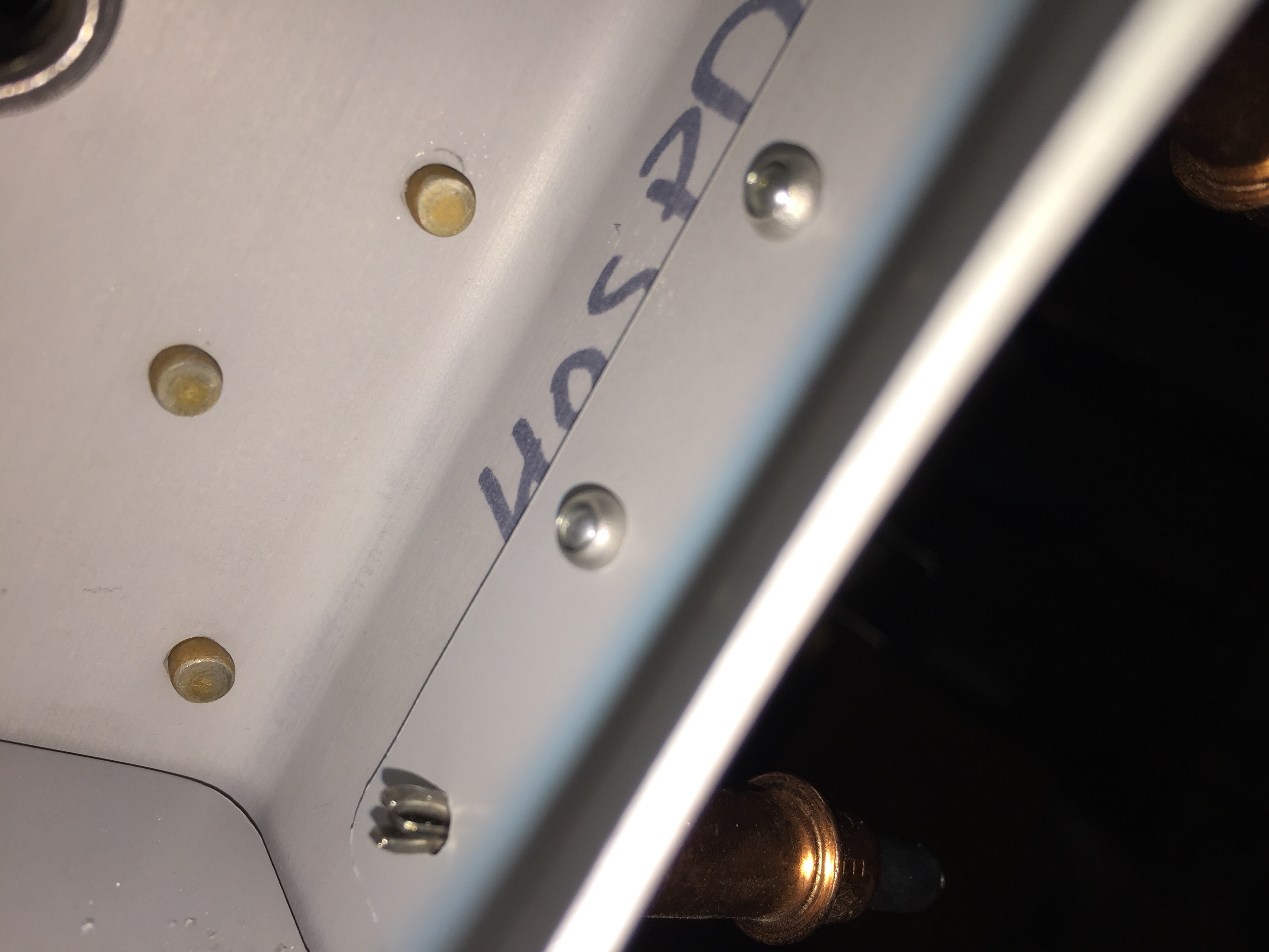Here you can see the blind rivets holding the rudder brace. Also the shop heads of the lower reinforce the plate.