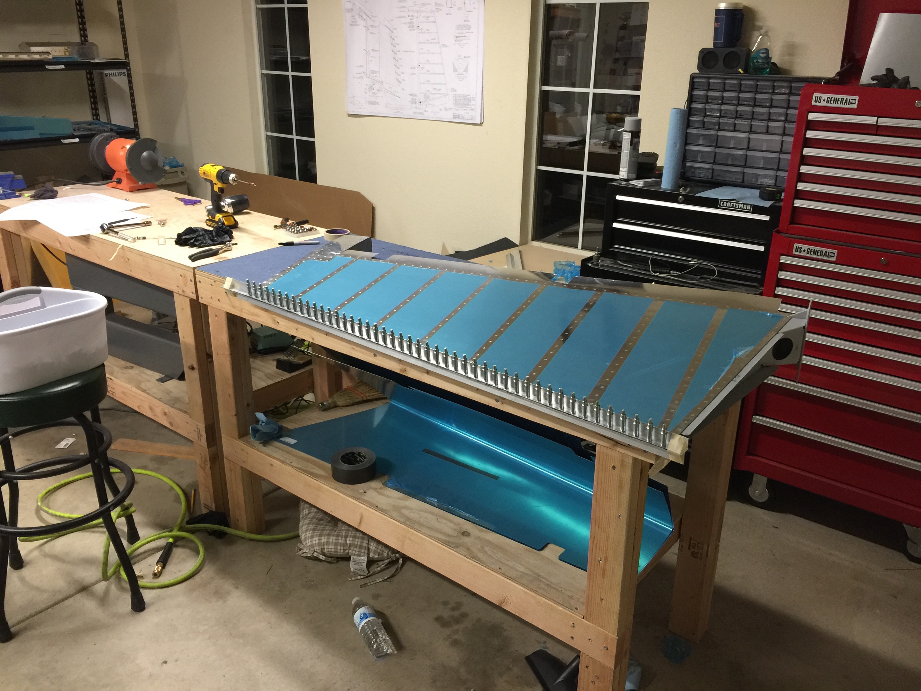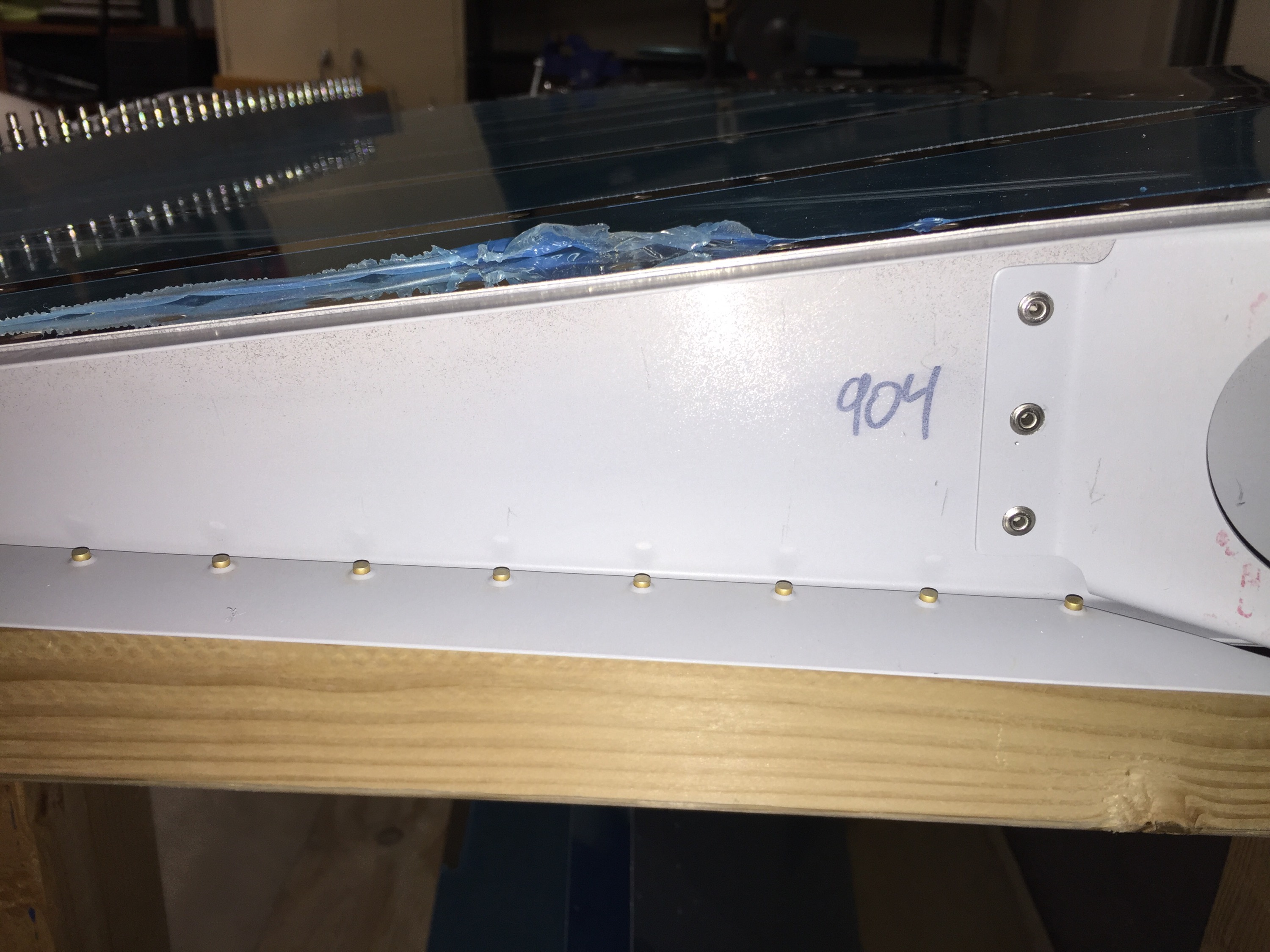 Here you can see the trailing edge reclecoed and glued. Once this cures in a couple days I’ll remove the angle and then I’ll be ready to rivet the trailing edge together.