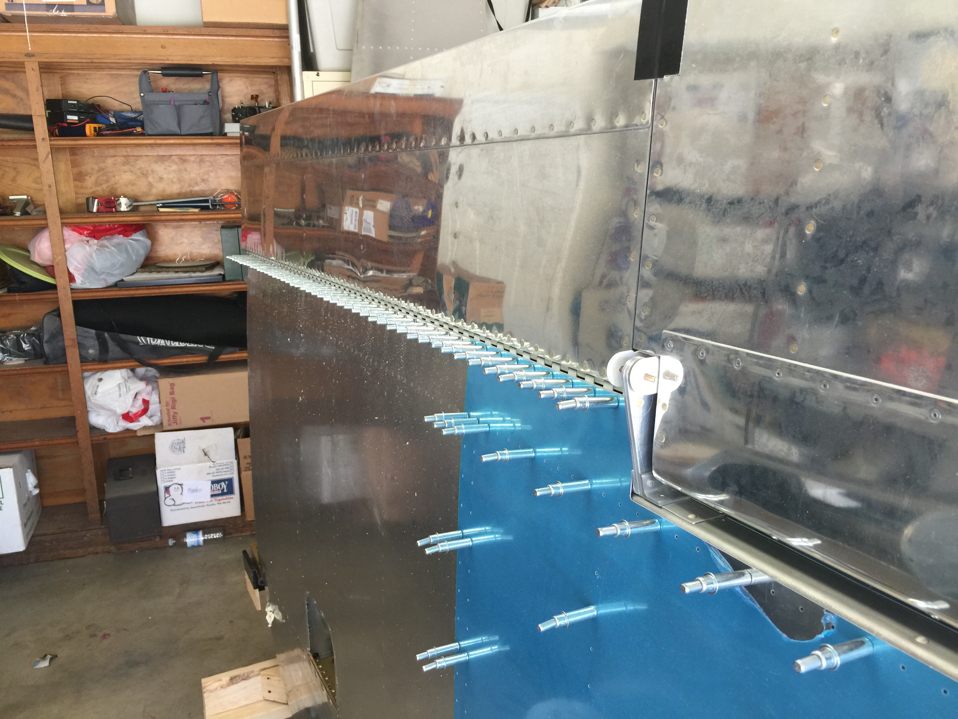 Here’s the shop with the lower wing skin on the right wing it’s been match drilled to the structure.