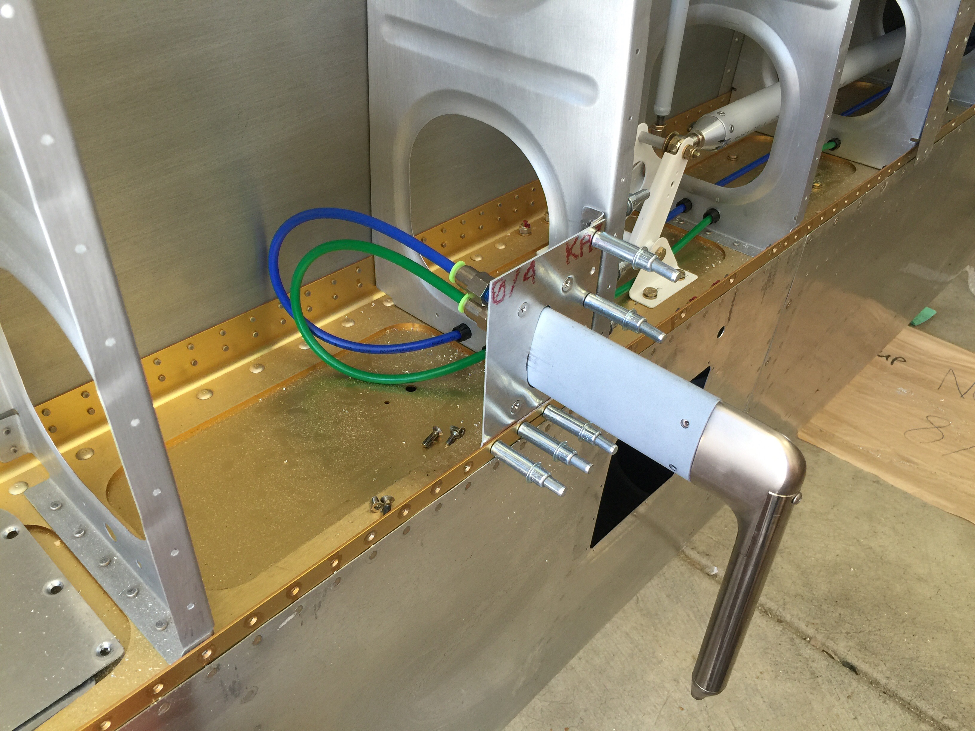 I also rigged up The pitot tube mount. I fabricated a bracket that’s clecoed to the rib. I decided to mount the pitot tube just outboard of the outboard access hatch. Some builders find this could interfere with the tiedown location (the small hole just above the square cutout). As long as I don’t get careless with tieing down the plane it shouldn’t be an issue.