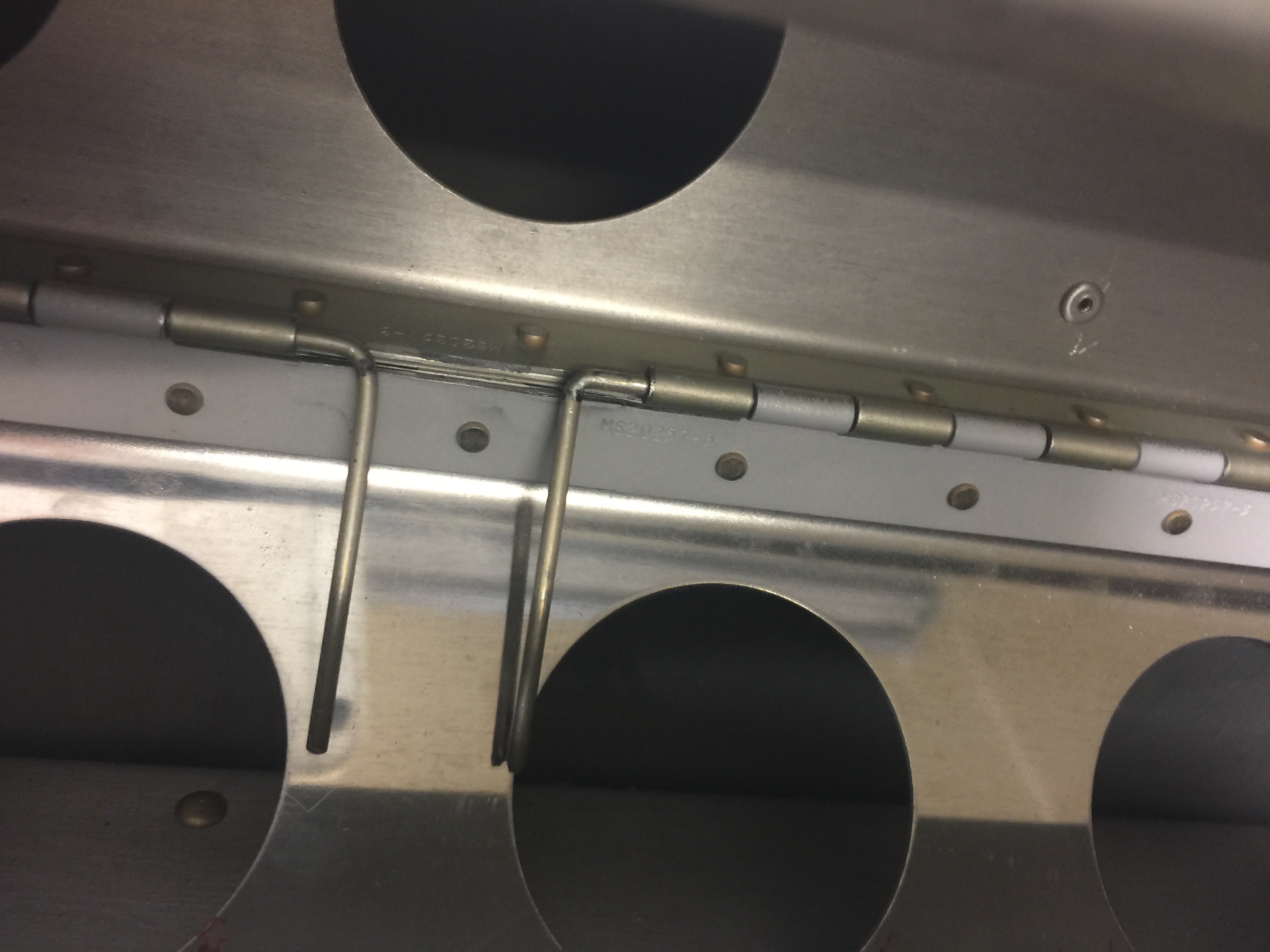 Similar to what a lot of rv builders do, I cut out three of the loops and then bent the hinge pin at 90 deg. This allows the hinge pins to each the last loop on either end.