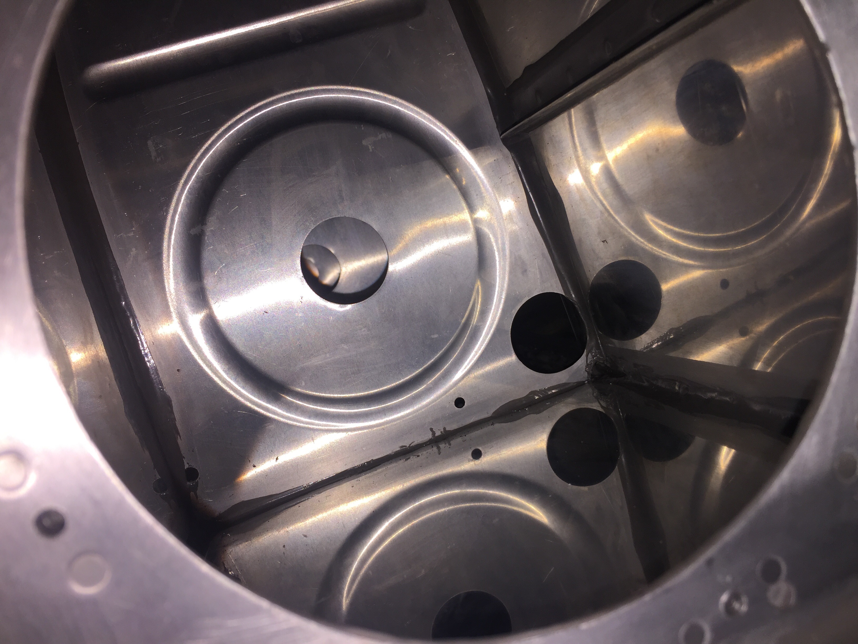 Looking into the tank through the access panel. The fuel level sensor will be located in this bay of the tank.