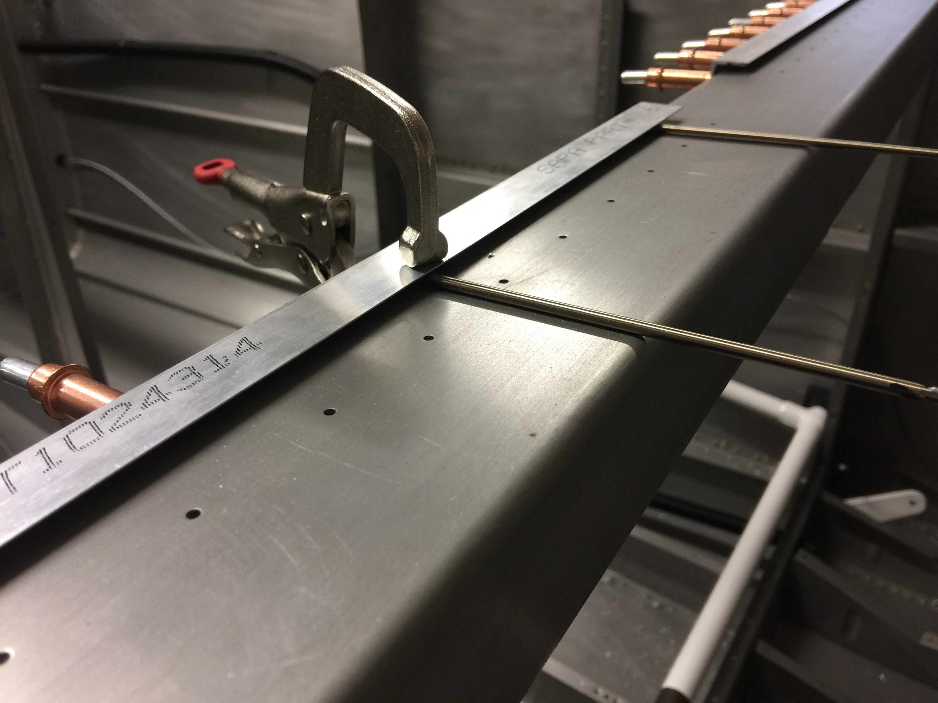 I’ve clamped the angle bracket, to the brace here and used some #30 drill bits to get the 1/8th spacing required.