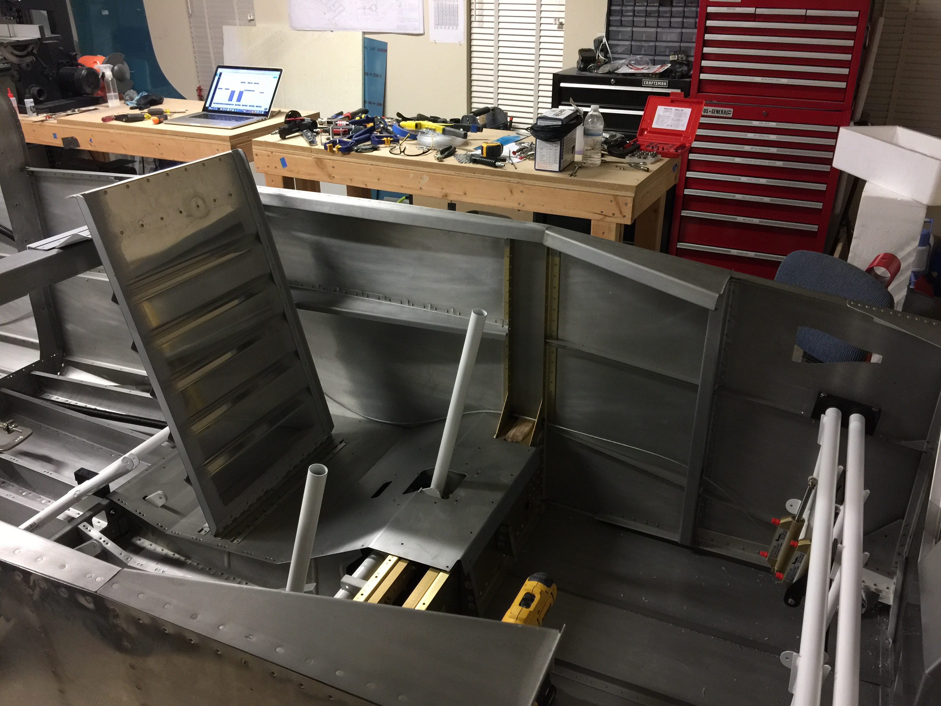 I then temporarily installed the seat floors and the seatback so that I could get a feel for the location of the pedals relative to how I would sit.