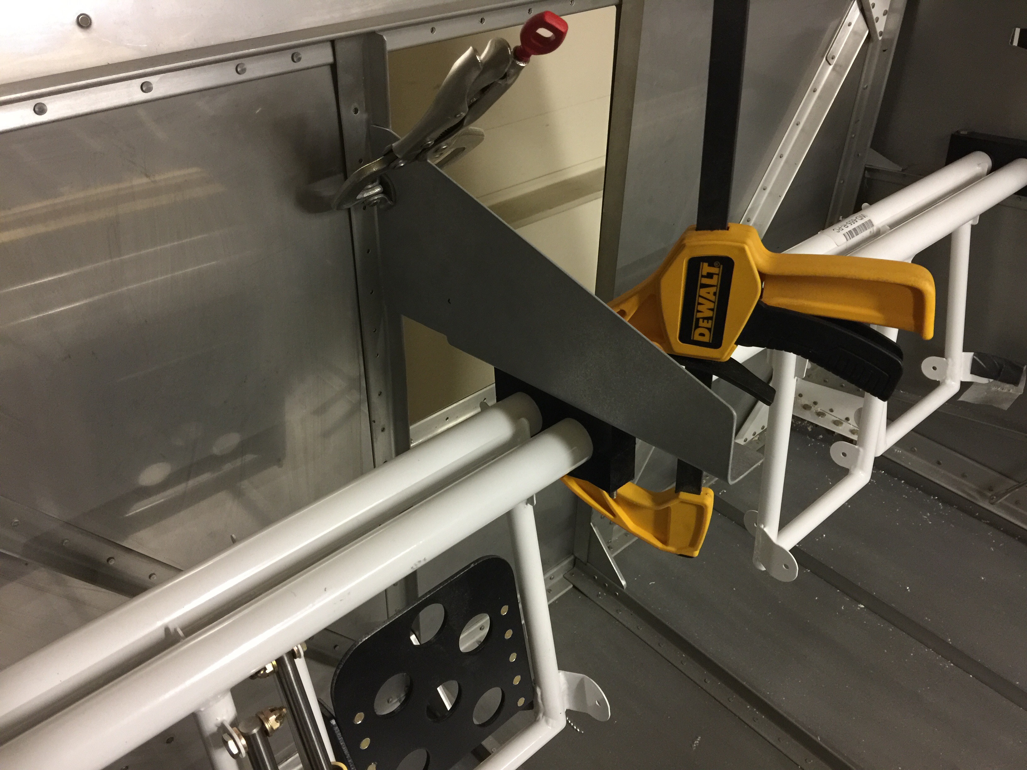 I then installed and drilled the rudder pedal brace. This will get the same treatment as the skin stiffeners so that the assembly will be adjustable. This will also get trimmed so reduce weight.