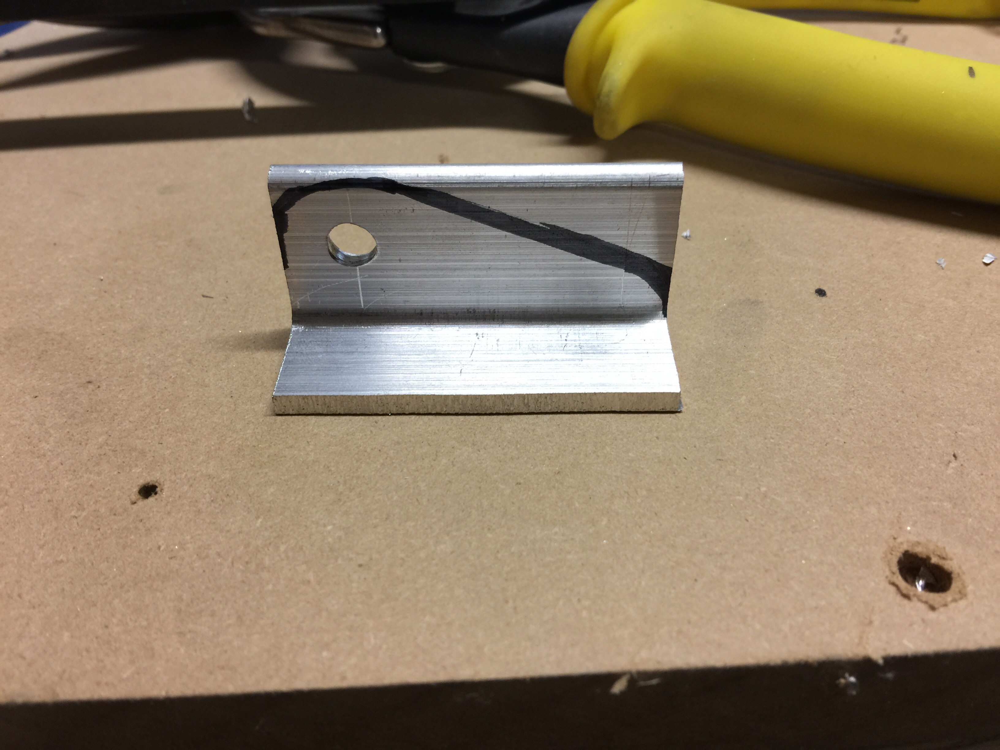 Here’s the finished angle with the 1/4″ bolt hole drilled.