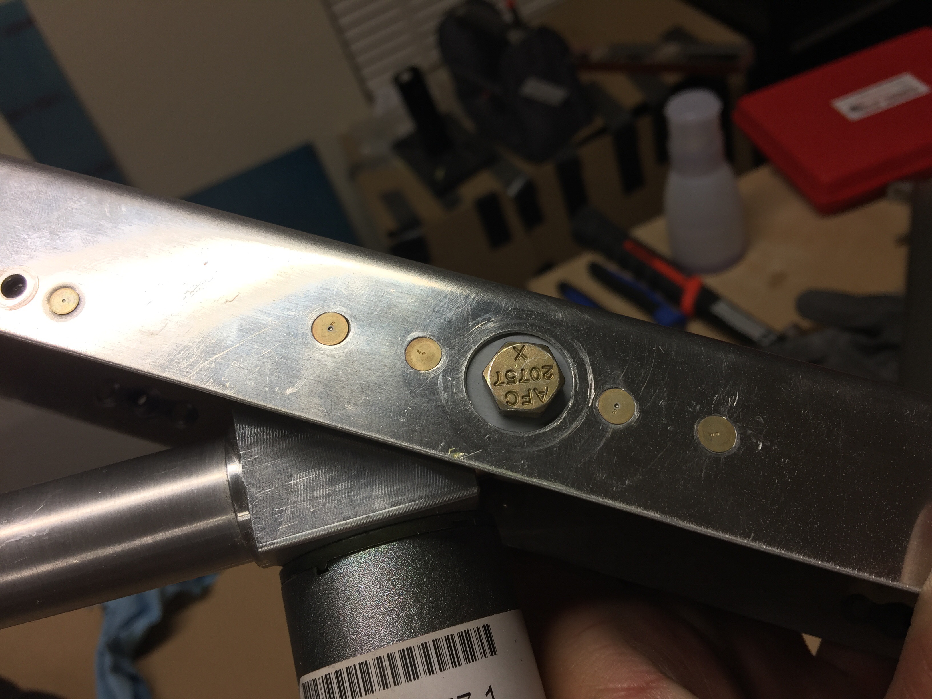 I started by drilling the holes in the motor arm to safety wire the bearing to the actuator. The motor uses a screw gear to raise and lower the flaps, and if this were to ever get loose it could back out entirely and the flaps would become loose. The safety wire prevents it from backing out.