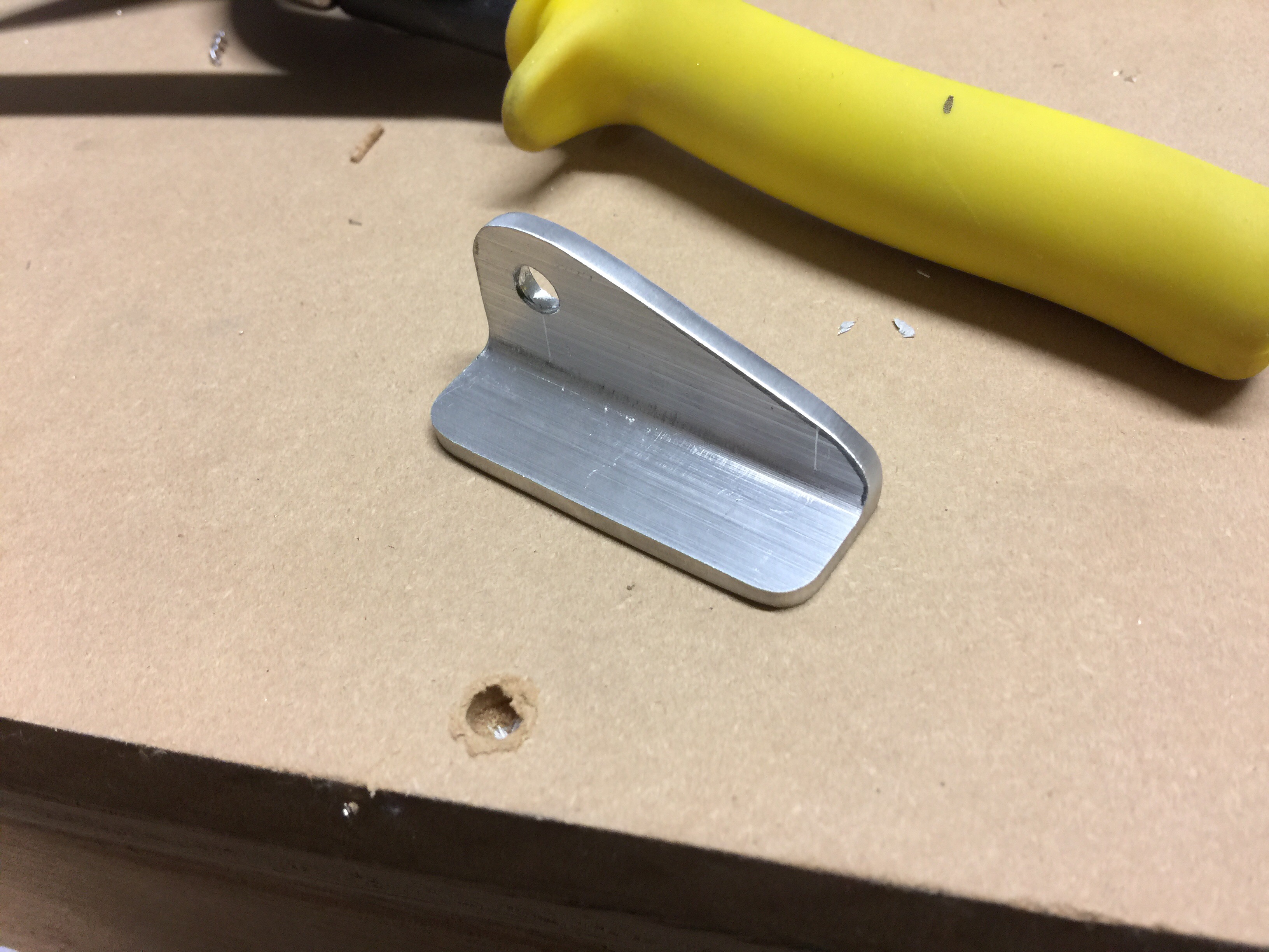 Here’s the finished angle with the 1/4″ bolt hole drilled.