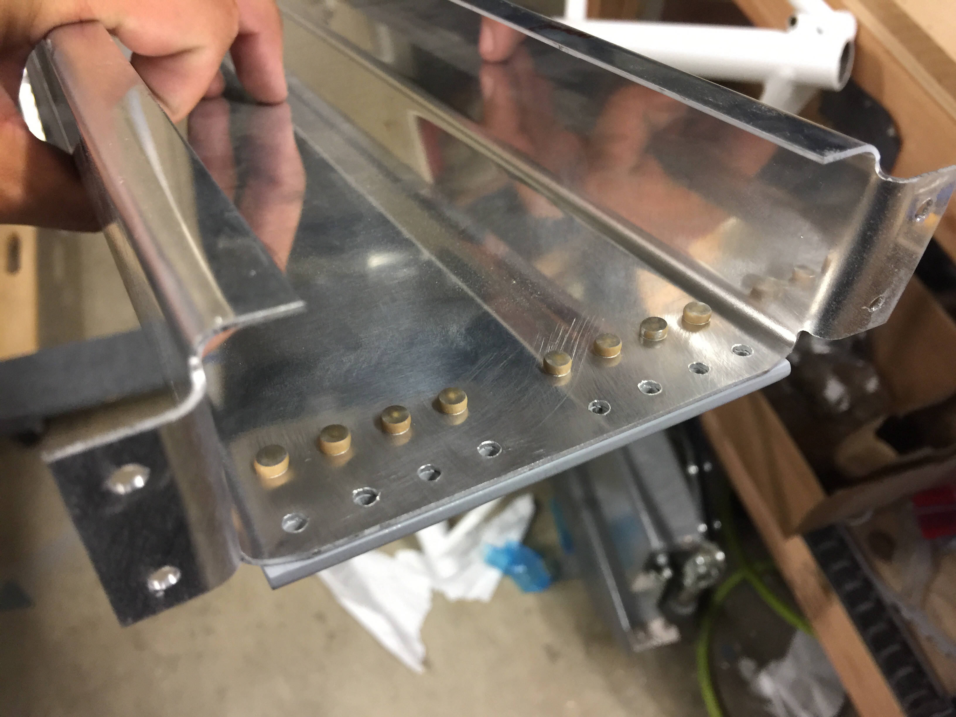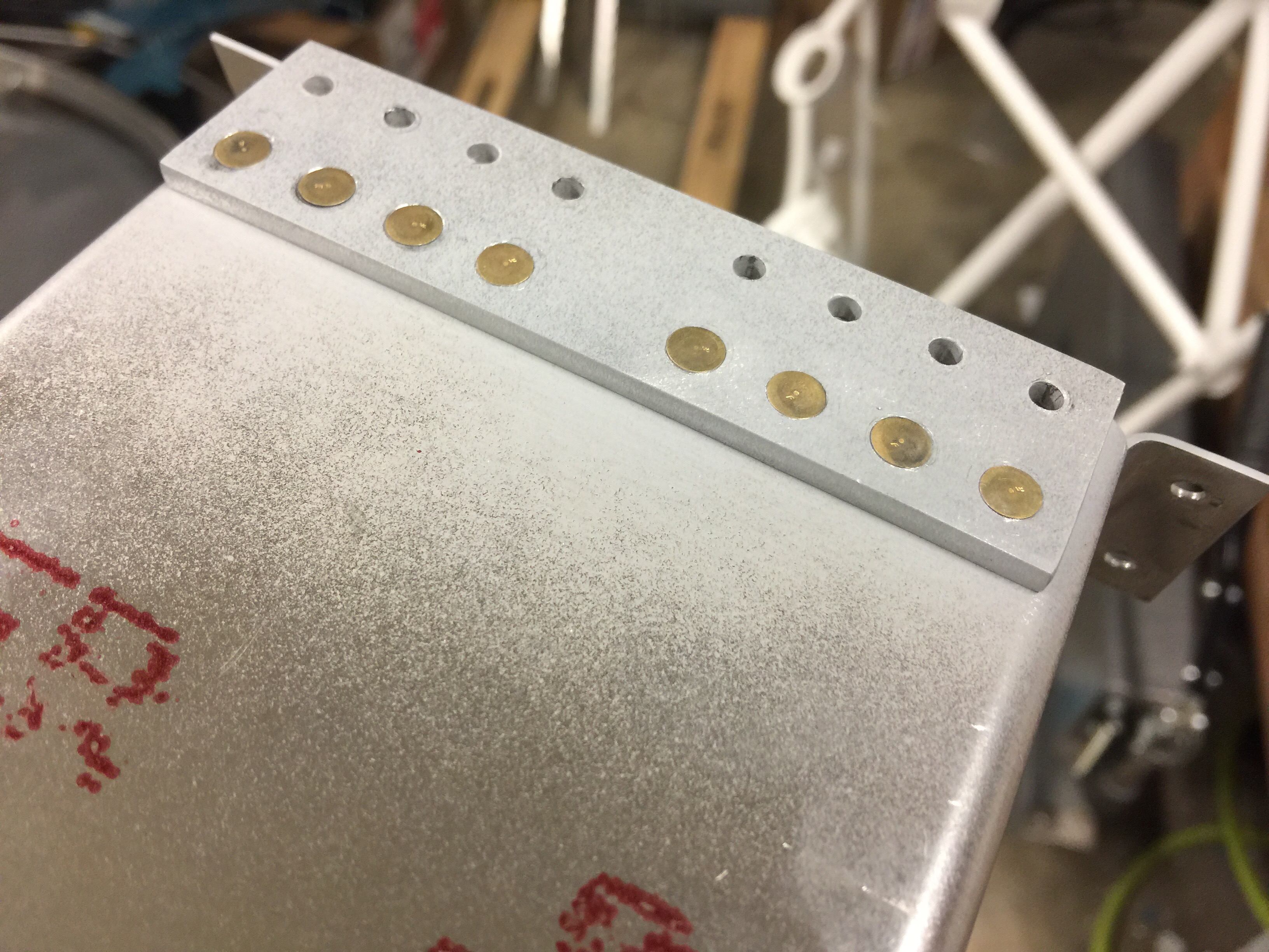 The remaining 8 holes will be riveted along with the final fuselage skin, the baggage bulkhead, and the gusset plate. All in all, there will be 5 layers of metal sandwiched.