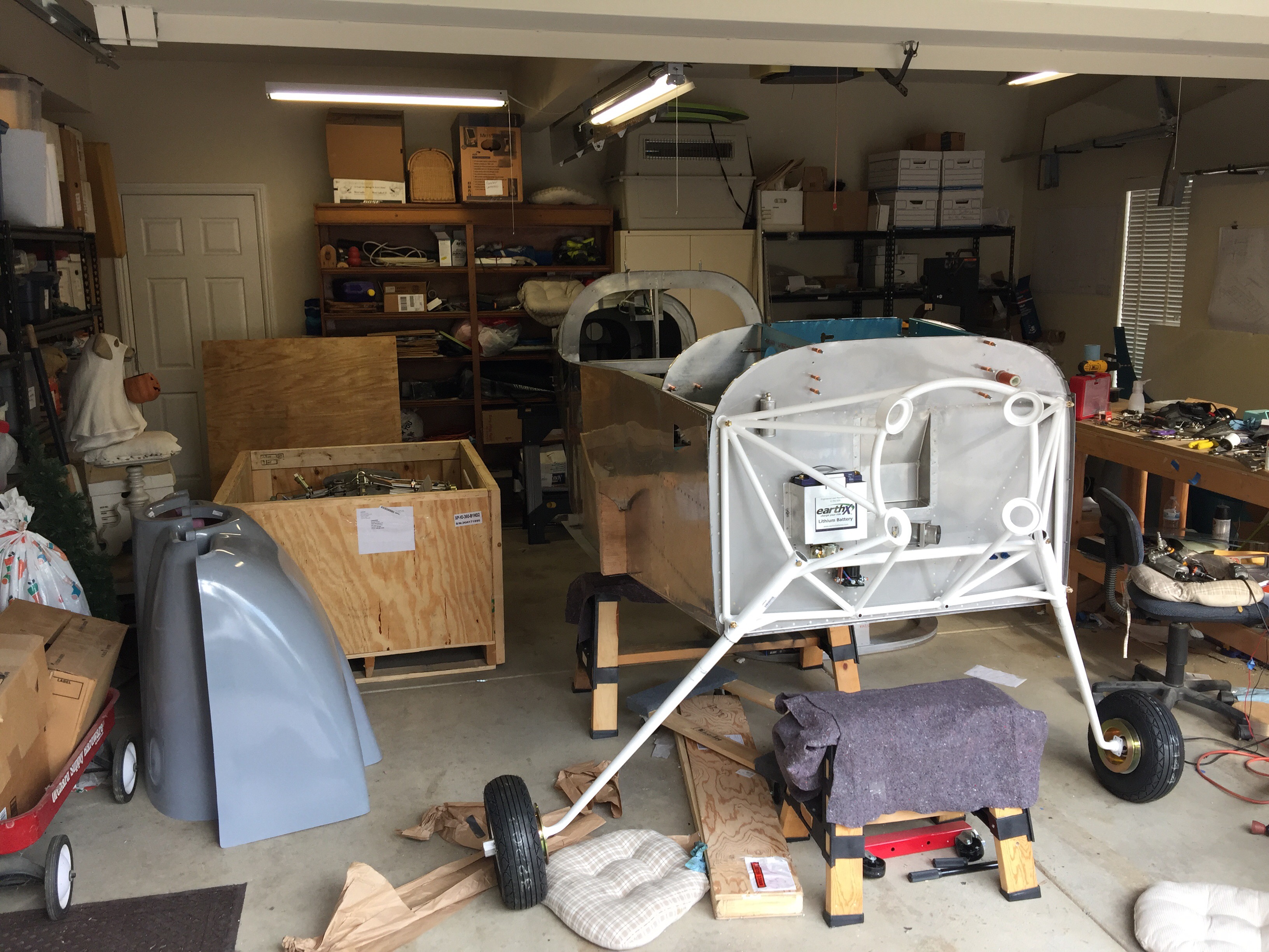 The plane is much taller now that it’s on its gear. Still a few things to do before mounting the engine. But it’s getting close.