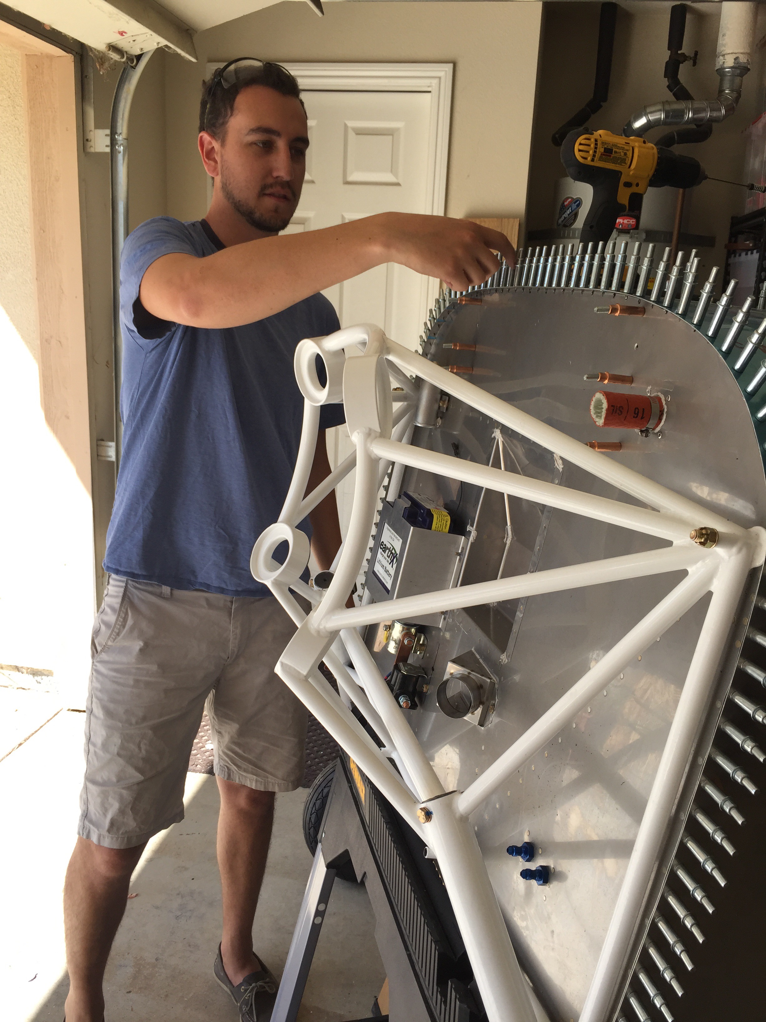 I then drilled the top skin to the firewall flange. You can see it clecoed here across the top.