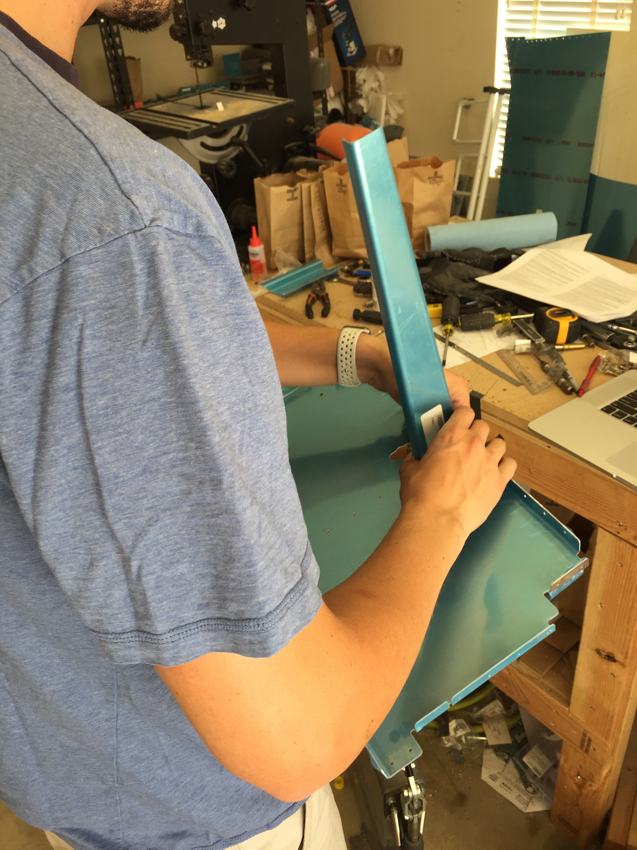I spent the time working on the panel, subpanel and forward ribs and forward top skin. Here’s the center sub panel with the forward channel.