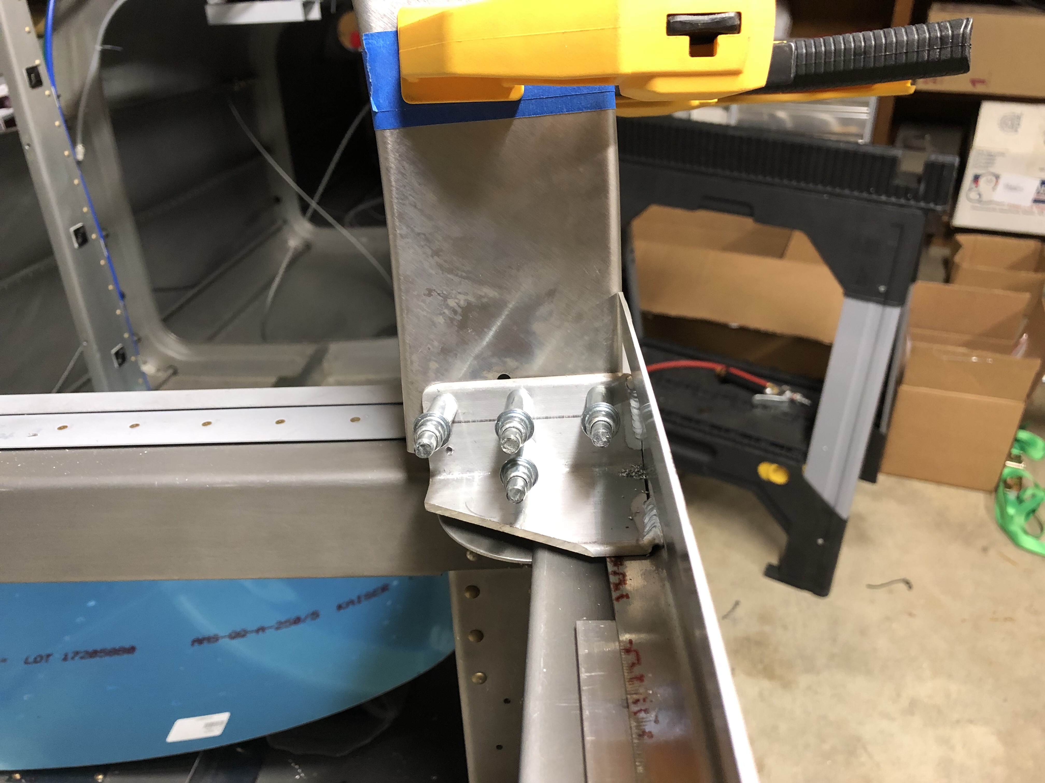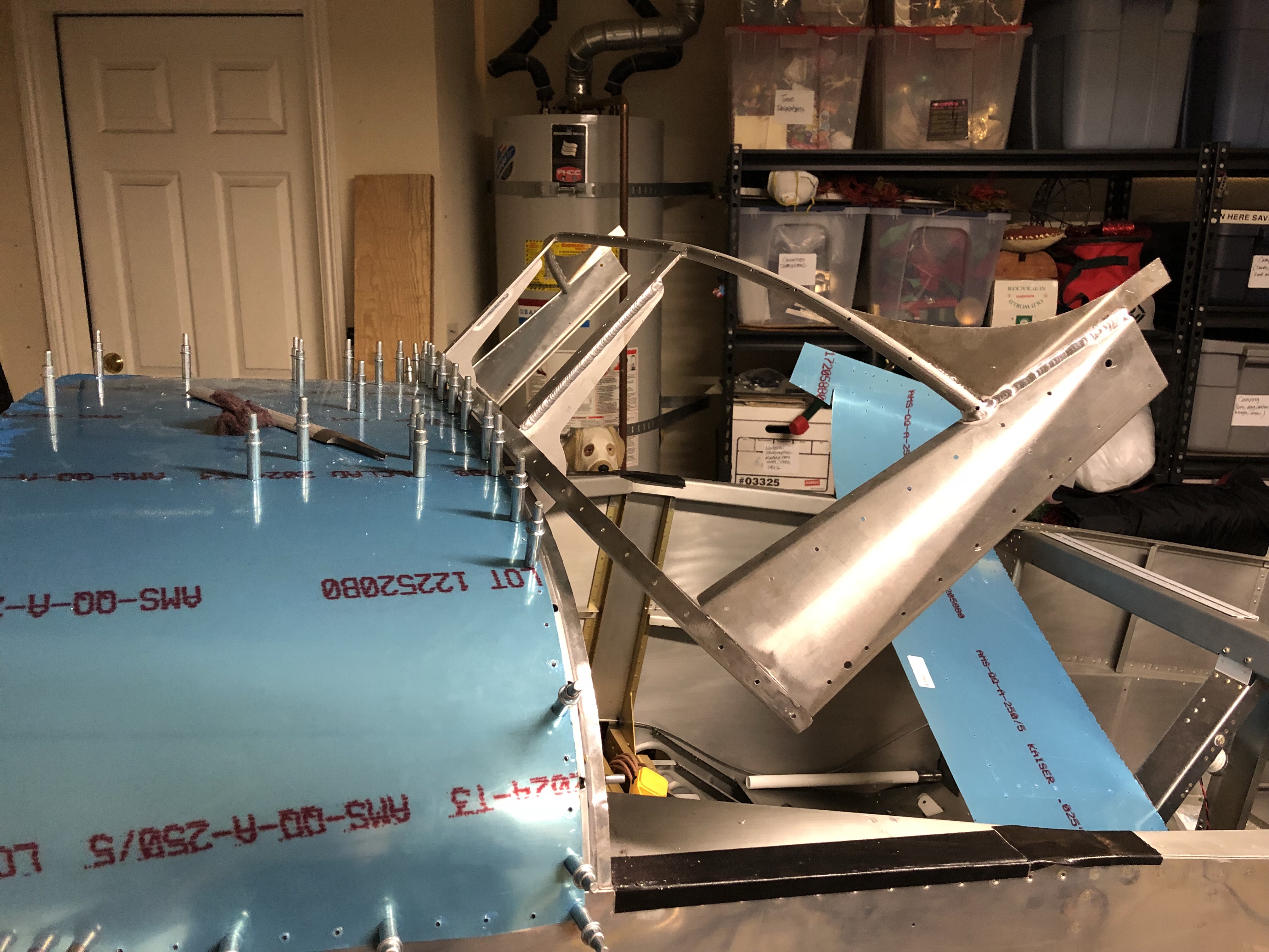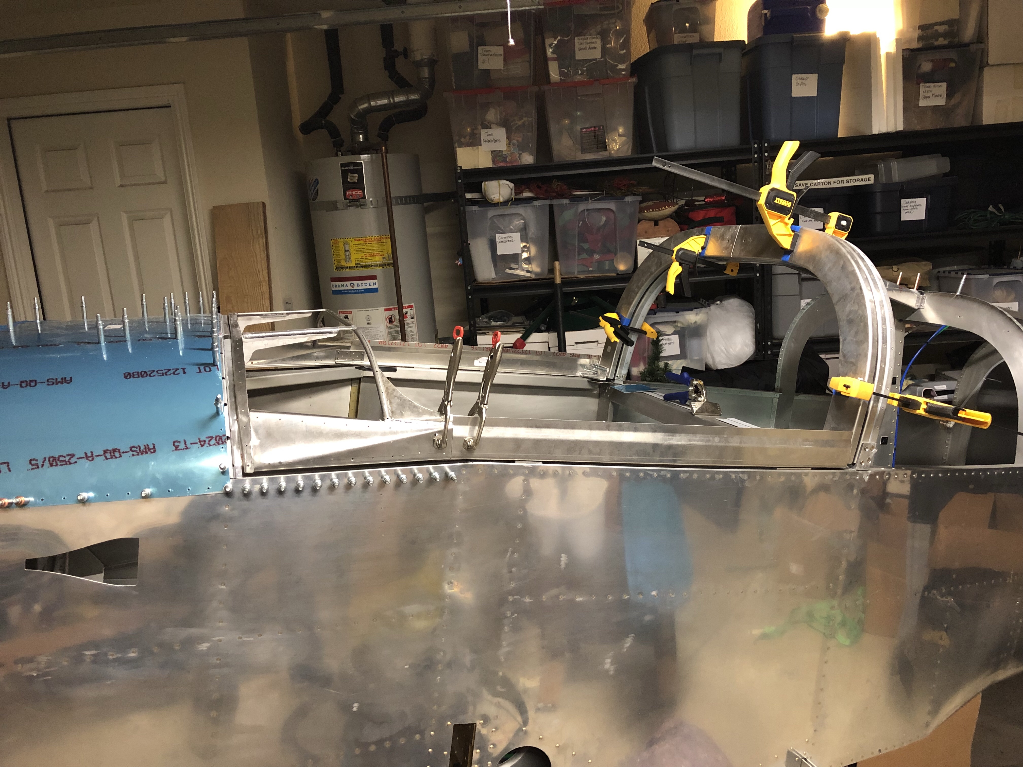 Here’s the frame attached and pivoted forward to check the clearance. I then got the side frame pieces out and prepped those, along with the attach brackets for the frame.