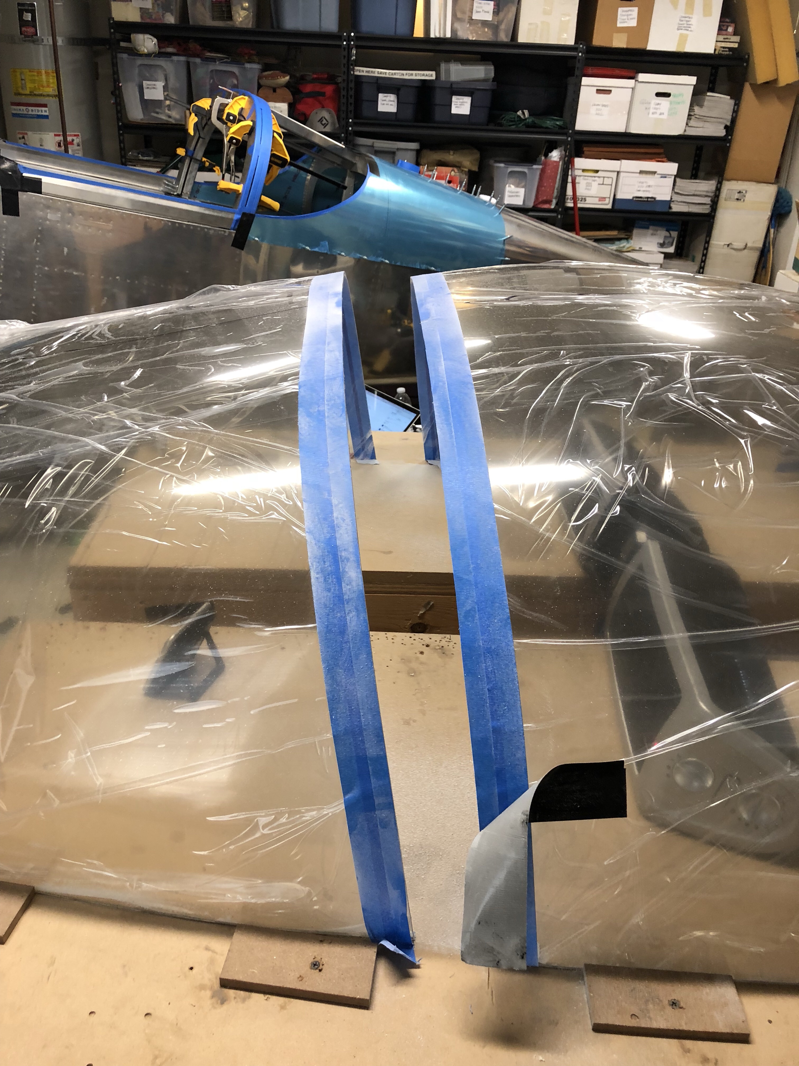 I then put the forward section back in the plane to check the alignment. With the top rear section lined up with my centerline, the sides shifted forward about 1/8th of an inch. This should relax back when I make the final cuts along the front of the canopy.