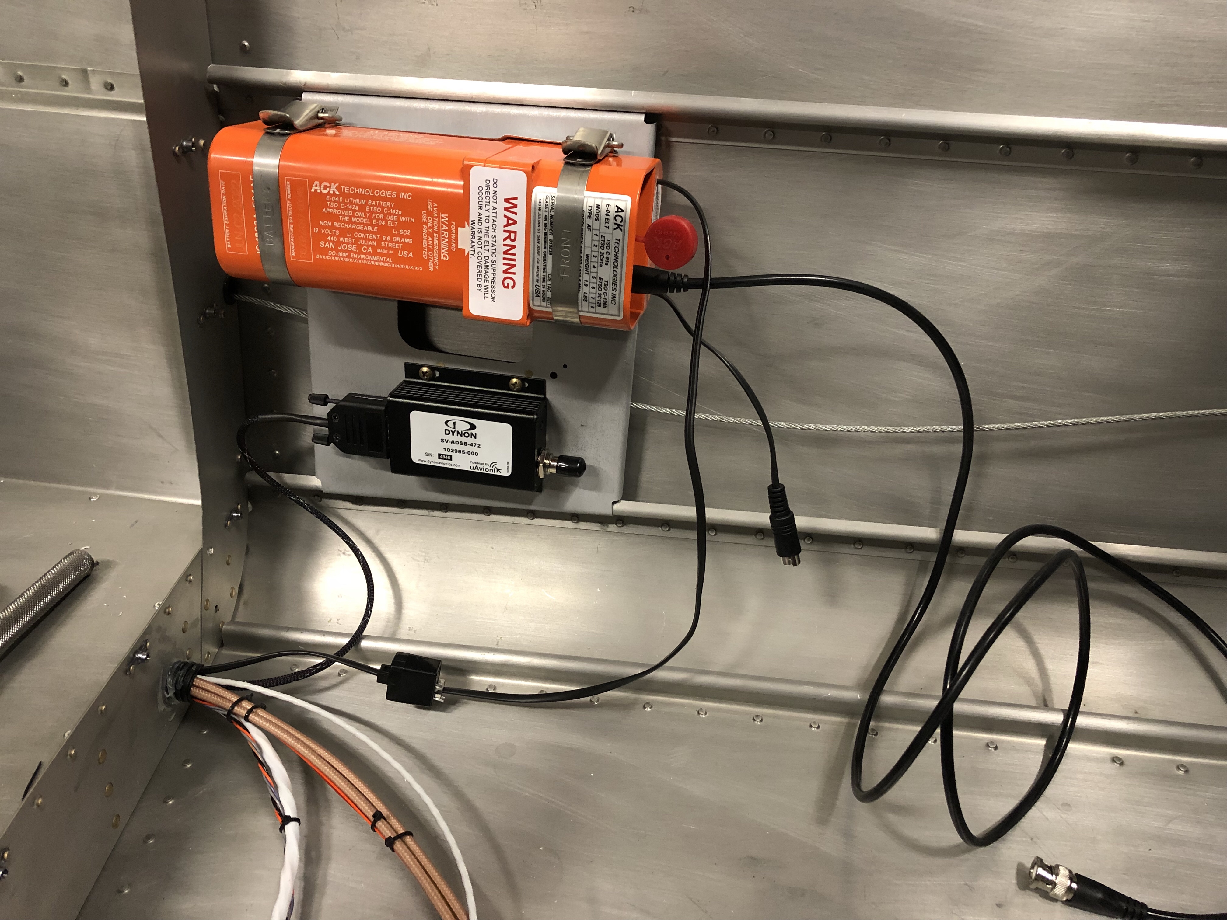 Once I had everything in position I ran the wires through the conduit. This includes the harness for the ADS-B, the phone line for the ELT, the 3-conductor wire for the ELT power and gps, and the rg-400 coax cable for the ADS-B antenna. I somehow managed to fit everything through the two conduits I have running under the seats. Only thing left to do is attach the antenna to the ELT and the ADS-B. By closing those two units out, the tail is now completely wired! Everything else will be forward of the seats and under the panel.