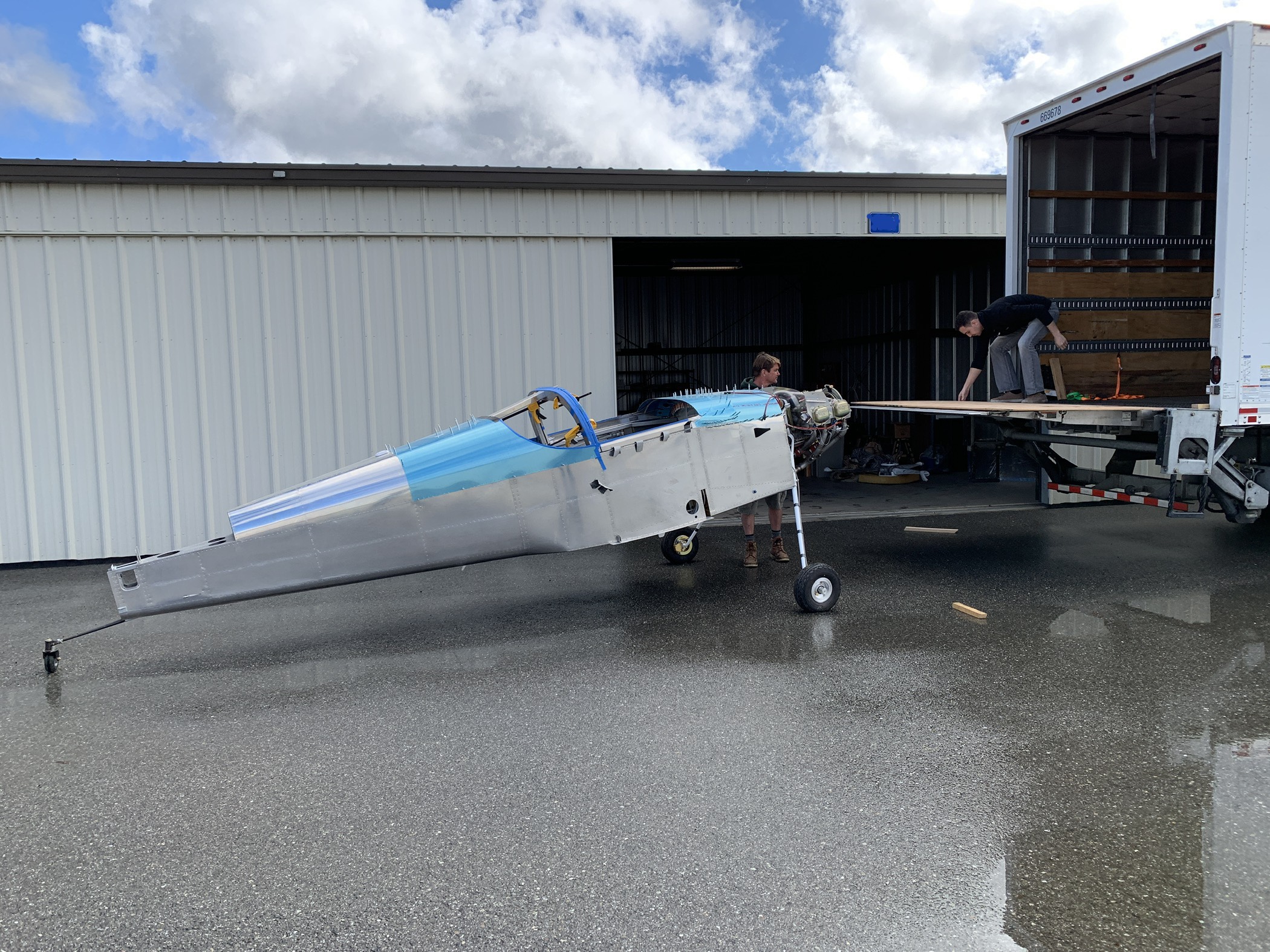It started by first getting a giant truck with a lift gate. Once I got that to the house I had my friend Mike over to help me out. We removed the canopy and rear window (which I just had sitting on the plane temporarily…need to finish this) and then rolled the plane out into the driveway.