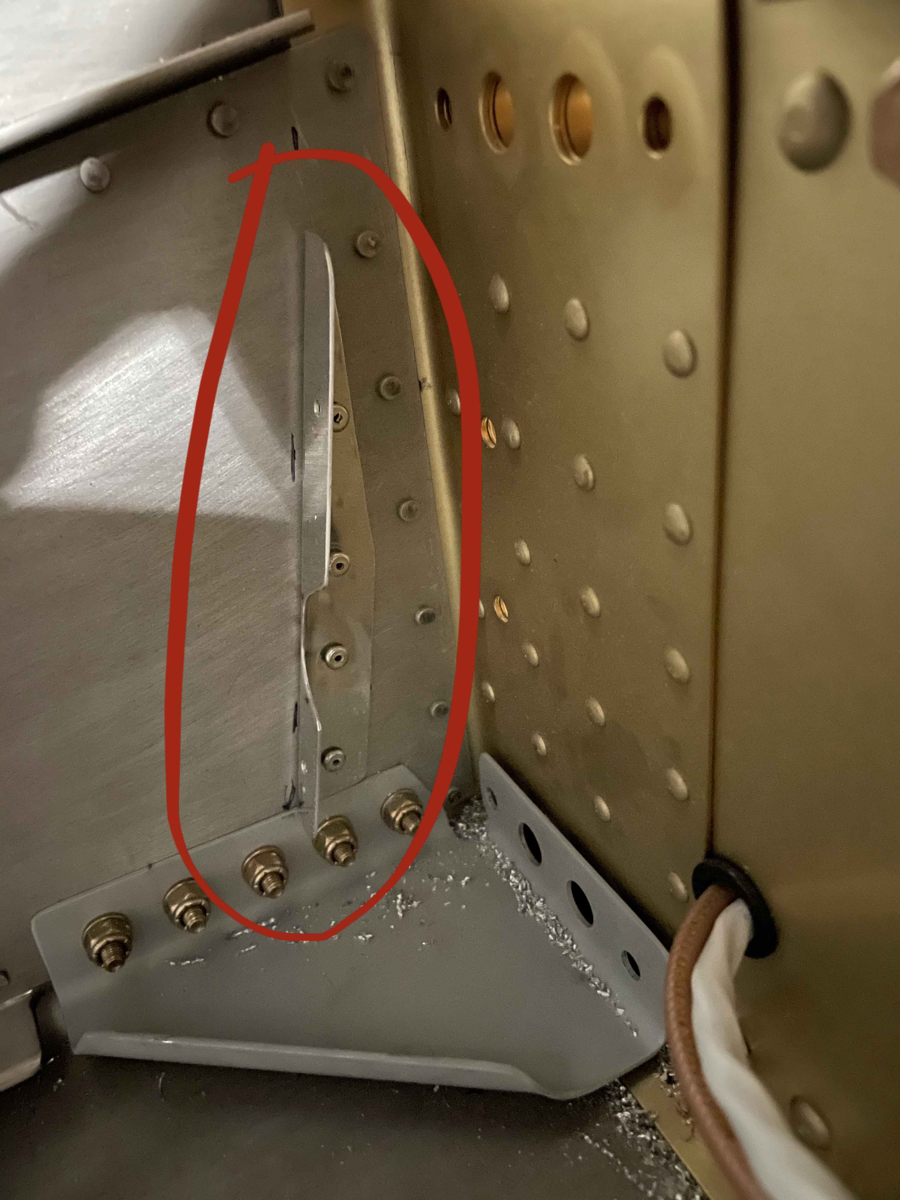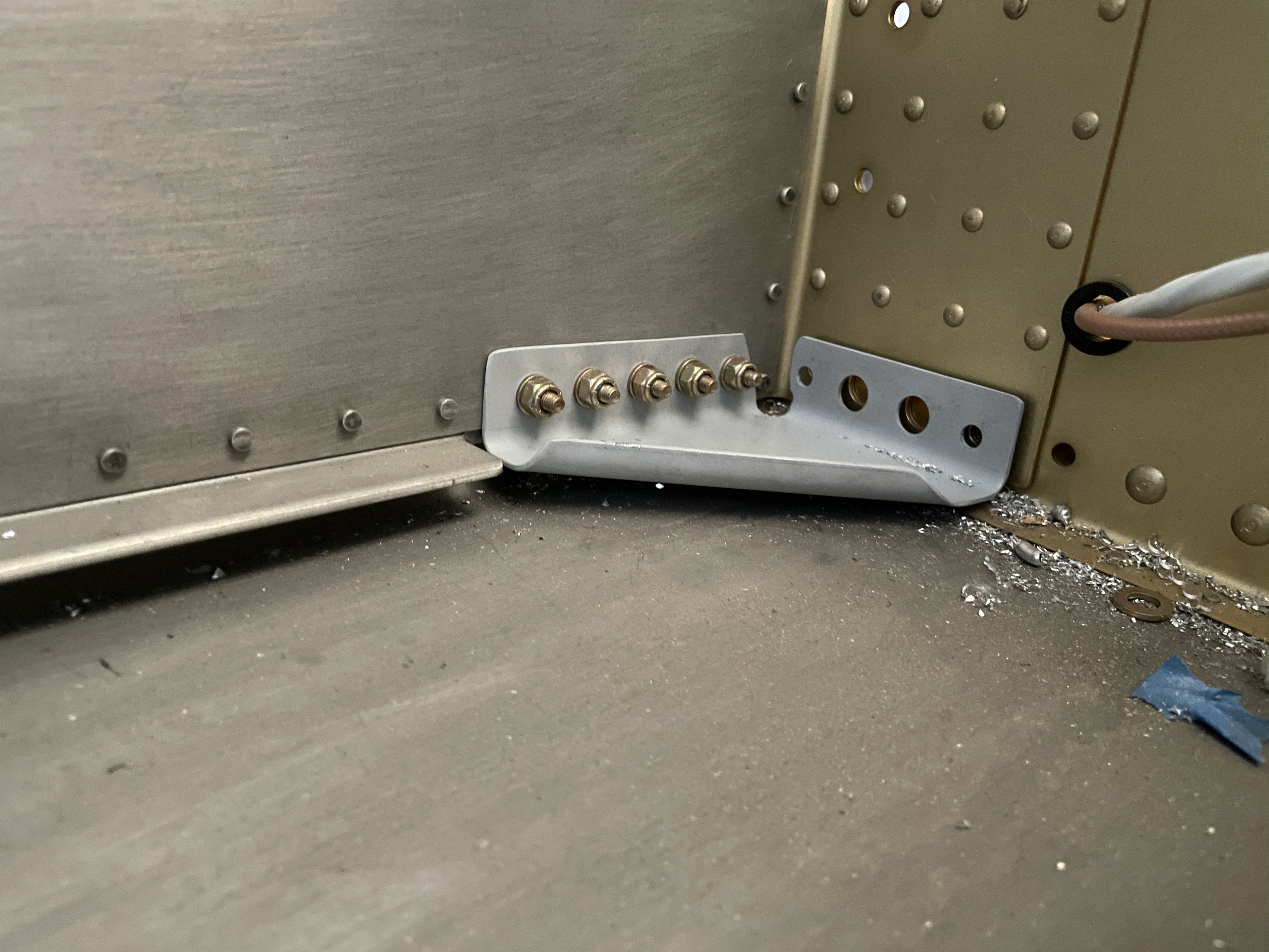 Today I spent a couple hours putting the forward fuselage gussets in place. They are unique to the -7 vs the -7A. The tri-gear plane rear landing gear are mounted just forward of the center section. Since the -7 is a tail trager, there is a gap here that need to be reinforced using these gussets. They are attached to the sides of the fuselage with 5 bolts that need to be match drilled. The gussets also line up with the bottom wing attach bolts.