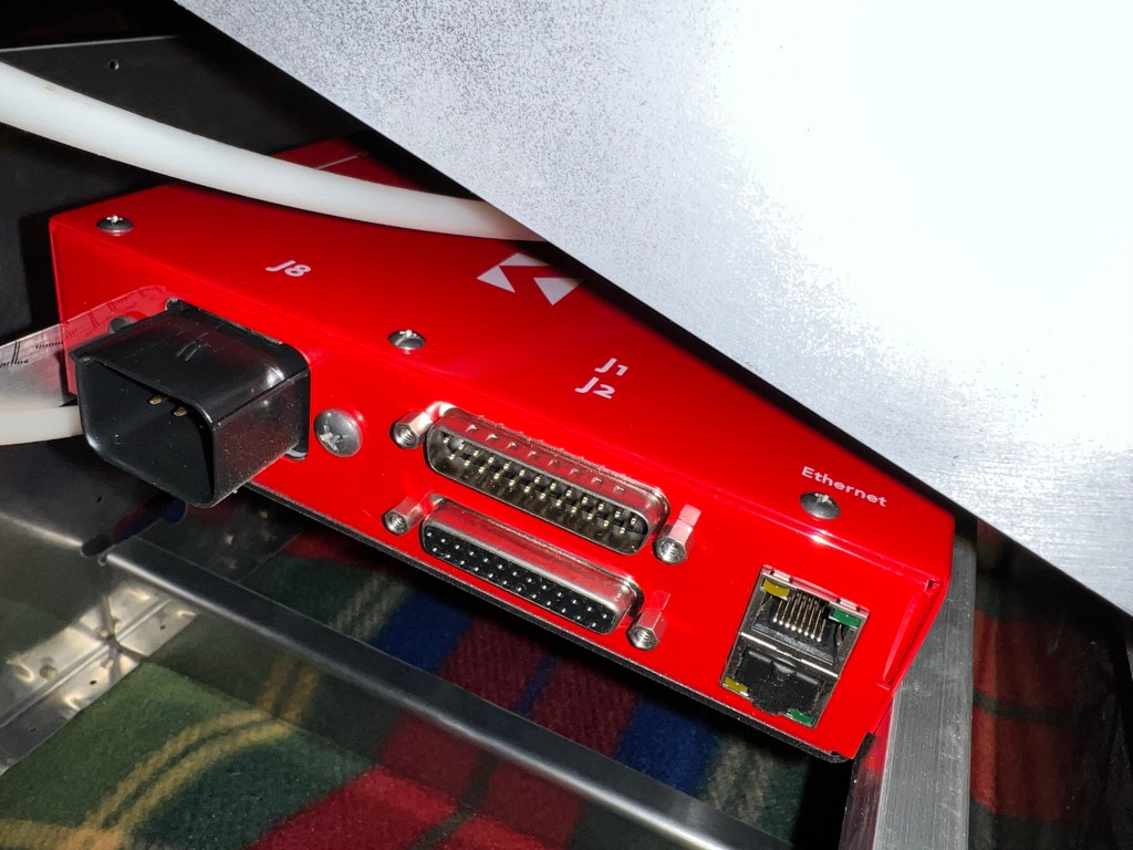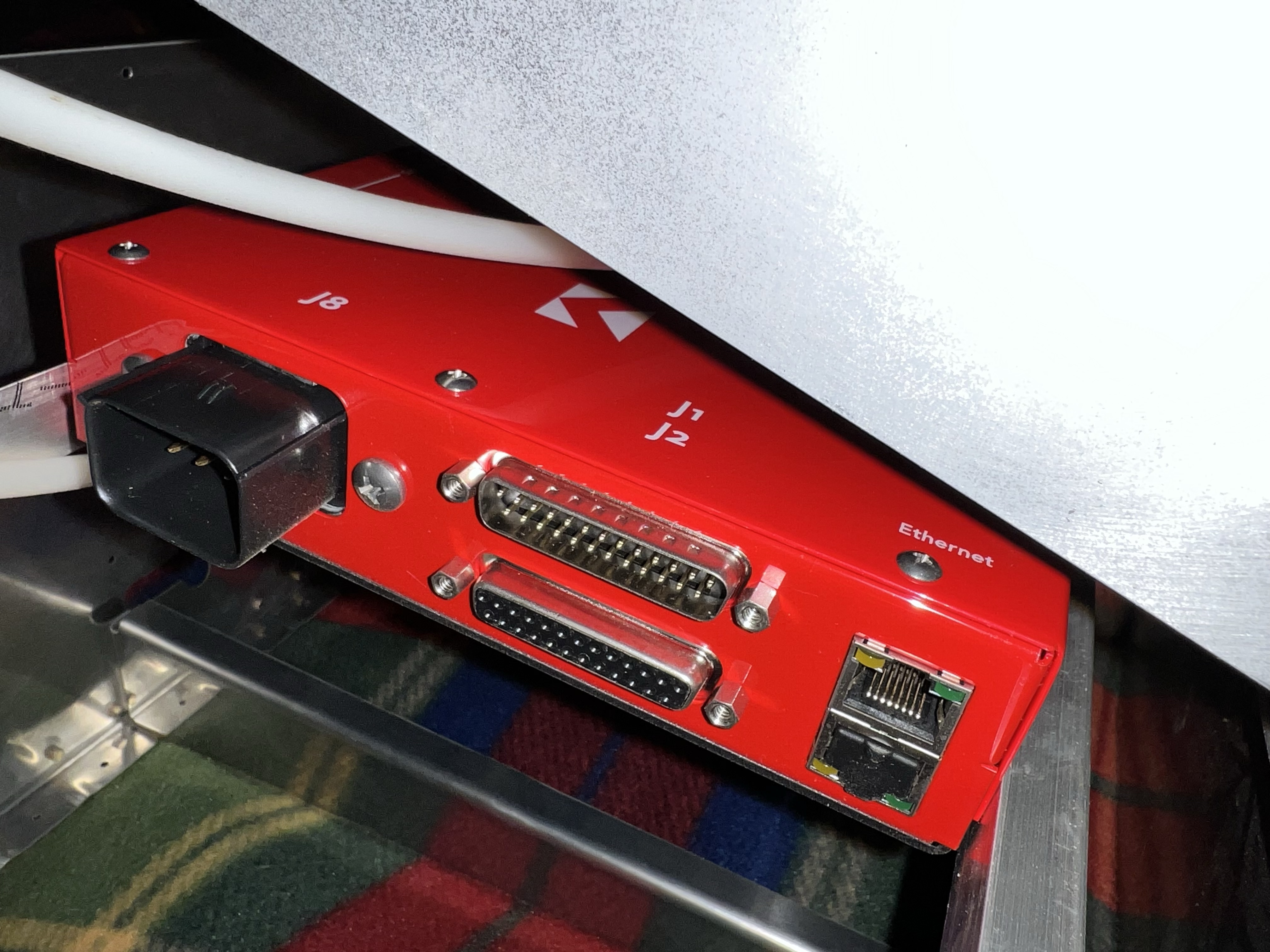 Here’s the VPX mounted under the panel (it’s all upside down) so that I could reference the two D25 connectors for J1 and J2. The J8 connector, as well as the J10 and J12 connectit’s on the other side are used for the larger power distribution, whereas the J1 and J2 connectors are for switches (connects to ground), flap position sensor, and serial Tx/Rx for communicating with the EFIS.