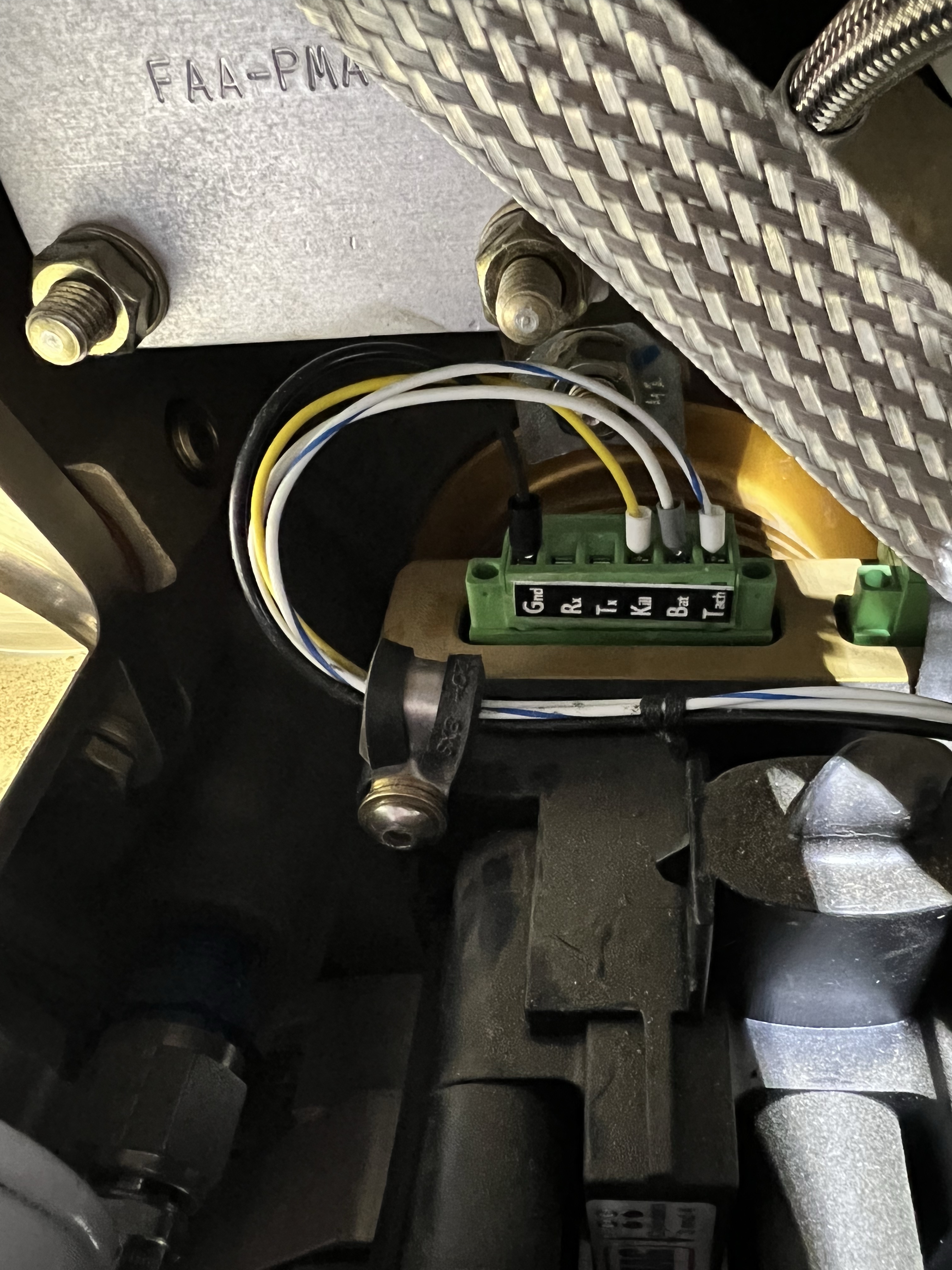 Here you can see the connector attached to the ignition with the wires attached. This is a six pin connector with Ground, ignition kill, power, and RPM out. There are two additional pins that can be shorted in order to change the default timing of the ignition.