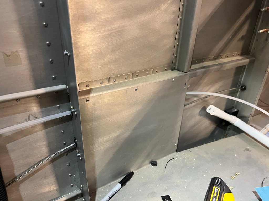 I had to drill two holes through the bulkheads. This is blind riveted and I didn’t want to drill it off. The alignment took some trial and error.