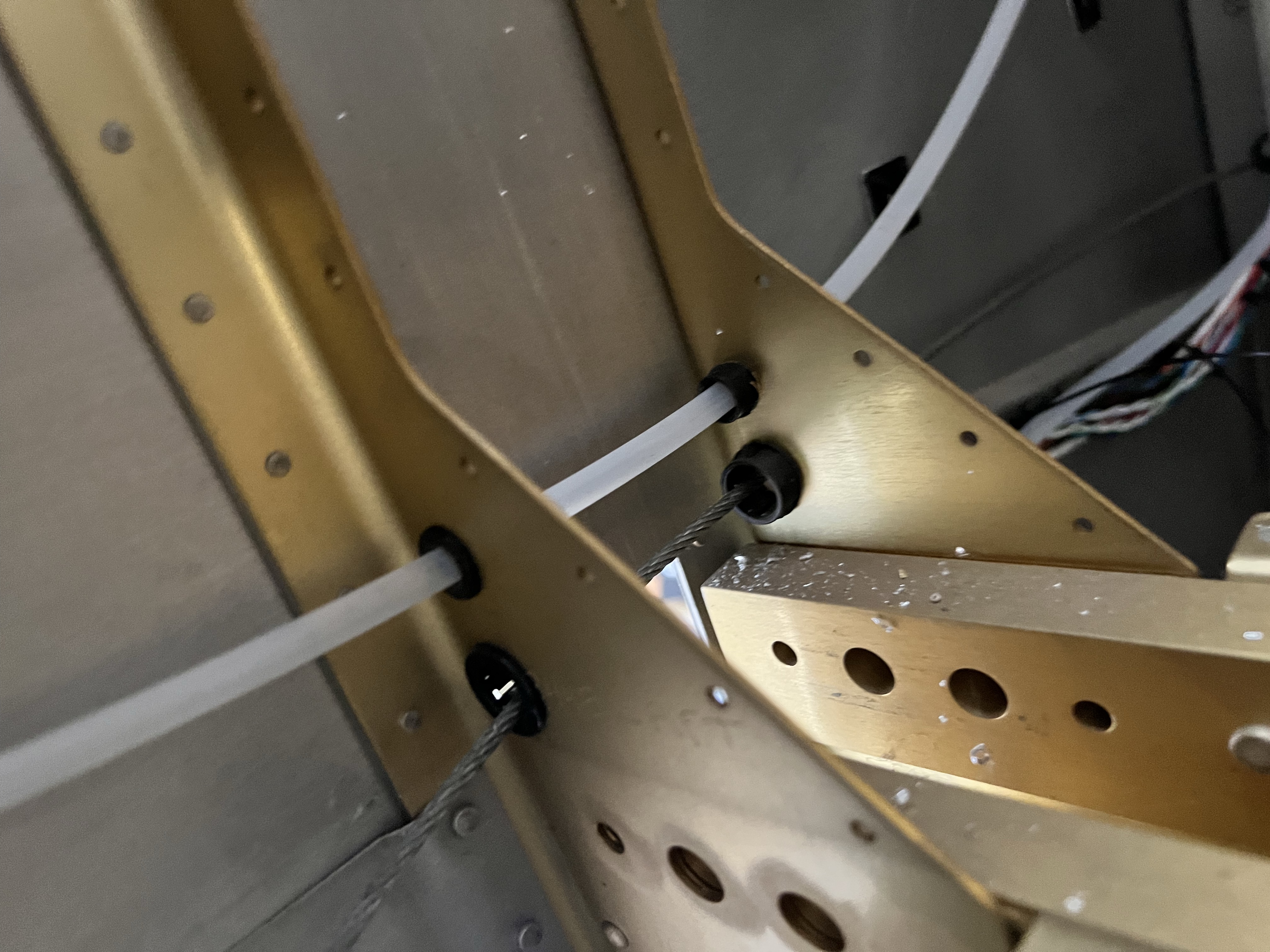 The final two holes put through the center channel bulkheads. From here, the static tube is routed up and to the panel and to the G5. Also on the panel will be a toggle switch an alternate static source in case of a static port failure.