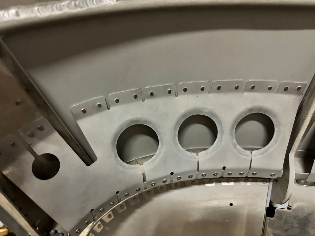 Here’s the right side brace. One rivet will need to be redone as the bucking bar slipped.