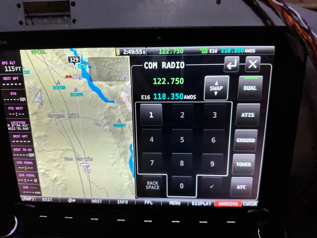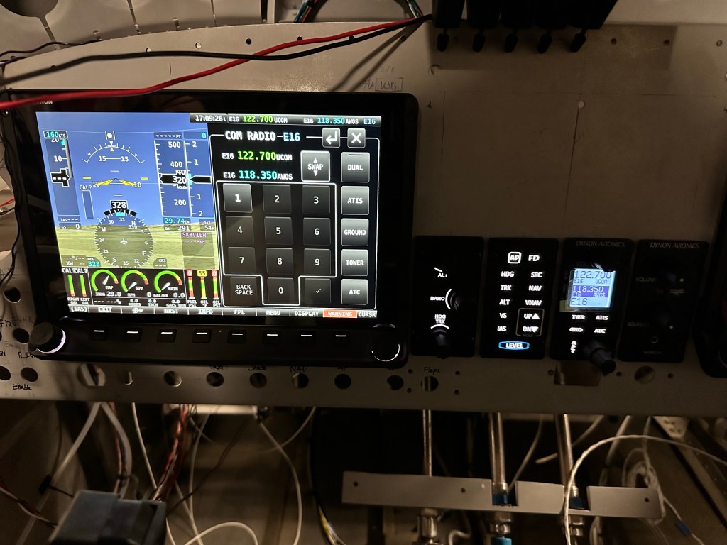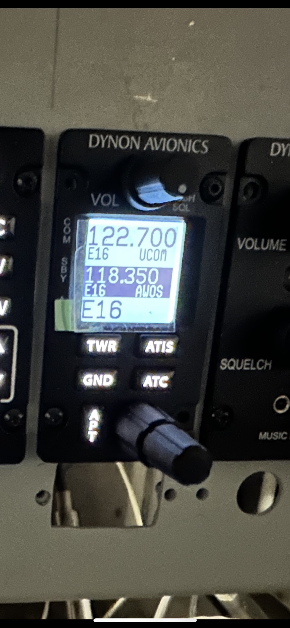I was able to tune the AWOS to verify reception. Crystal clear. I then checked on the local traffic frequency with my handheld radio and everything functioned normally. A helicopter pilot happened to pass through and was able to verify my transmitting capabilities. The antenna is on the underside of the plane, and being inside the hangar I didn’t expect good quality but it seemed work okay, no static or anything.