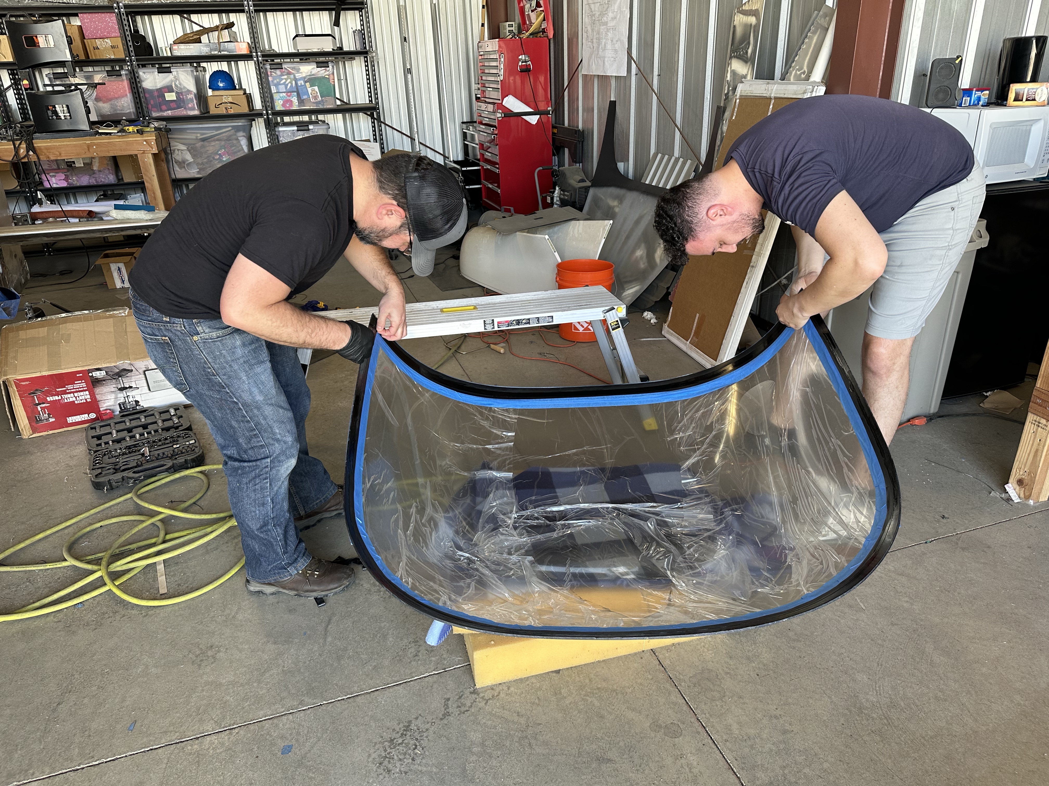 My friend Norio came to help with the install. We started by dry fitting the canopy and marking it for exact alignment. We walked through the process and the execution plan.