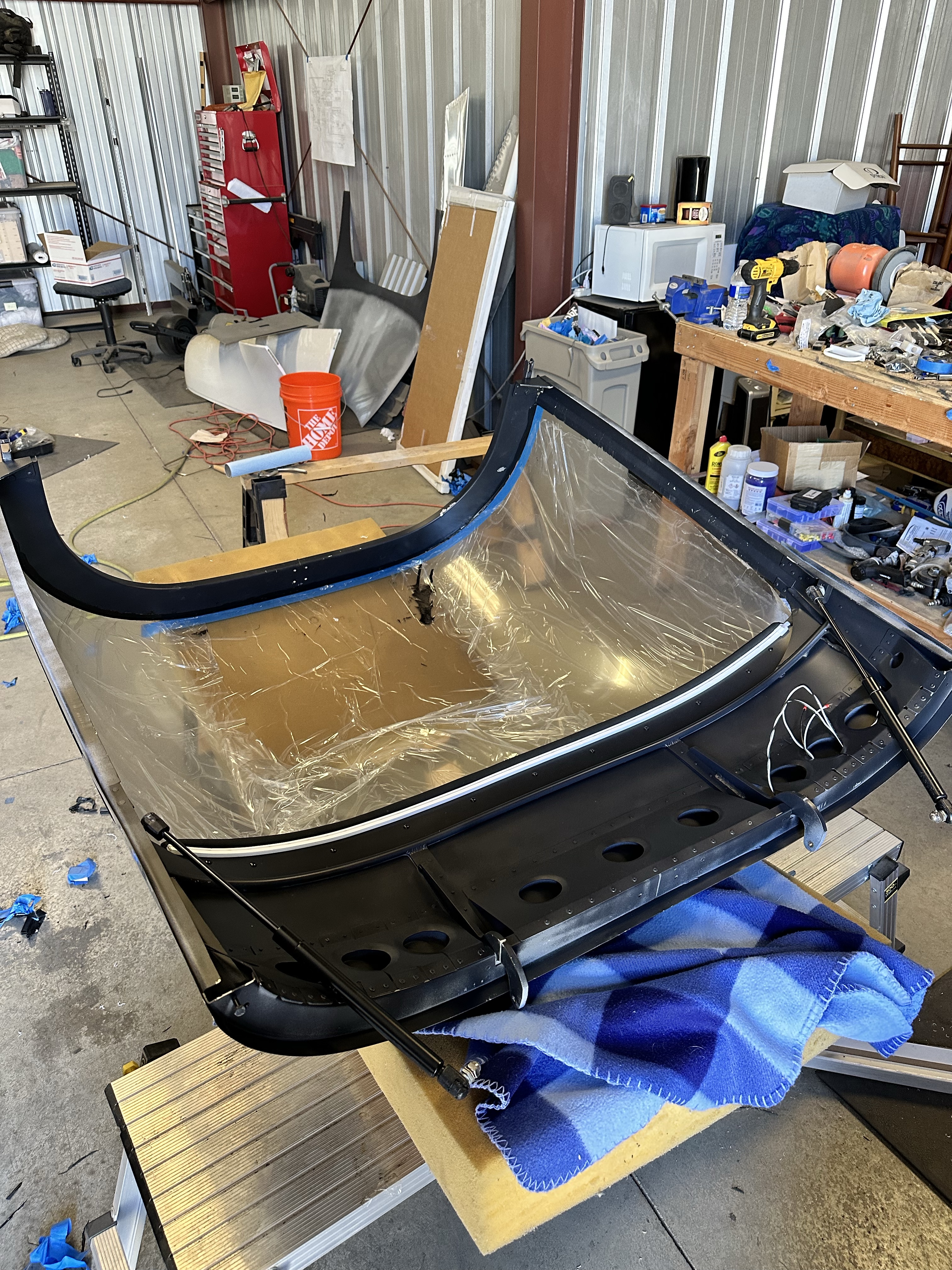 I propped the canopy up so I could get under it and clean up the areas where there was excess squeeze out of the glue.