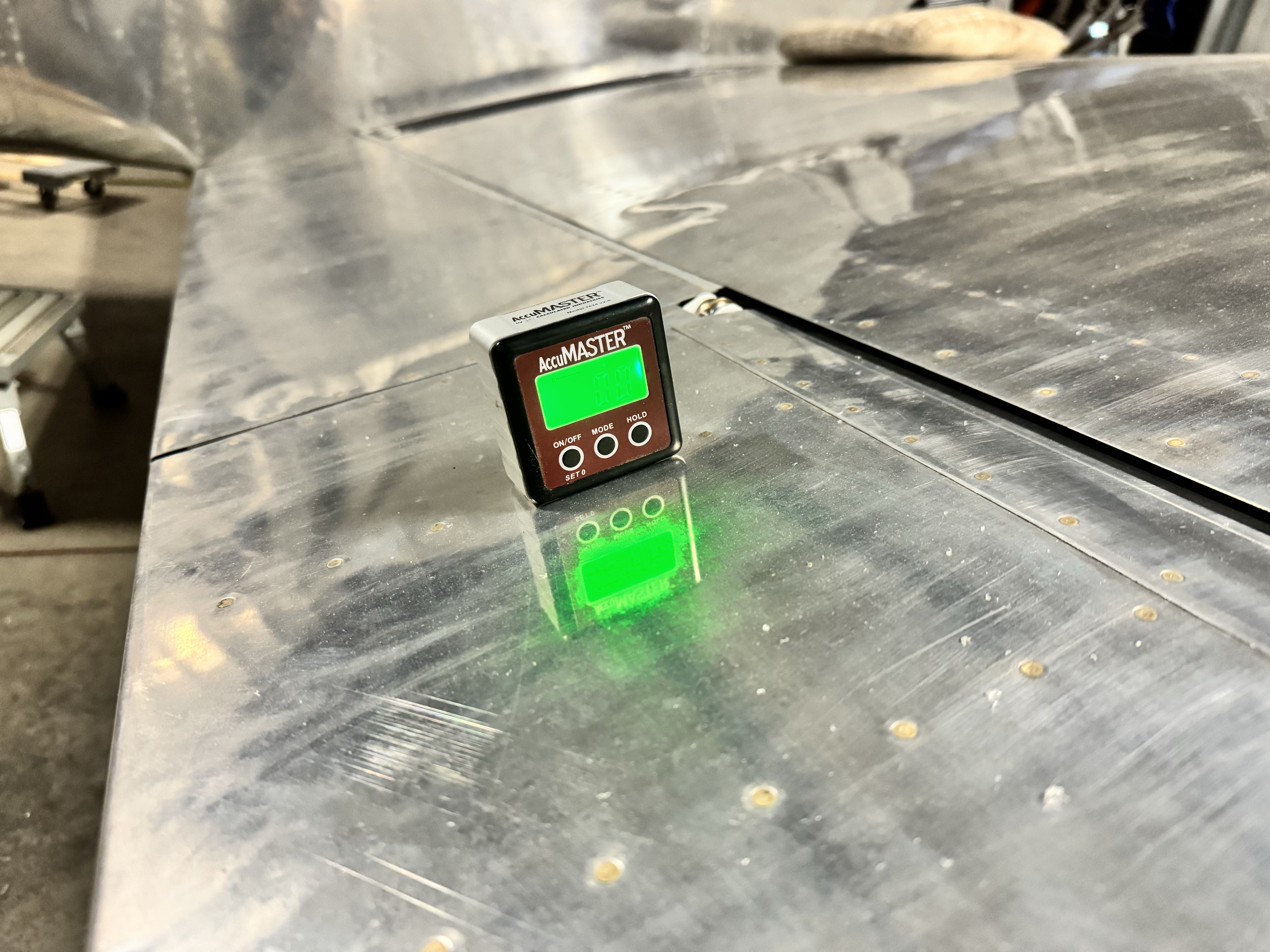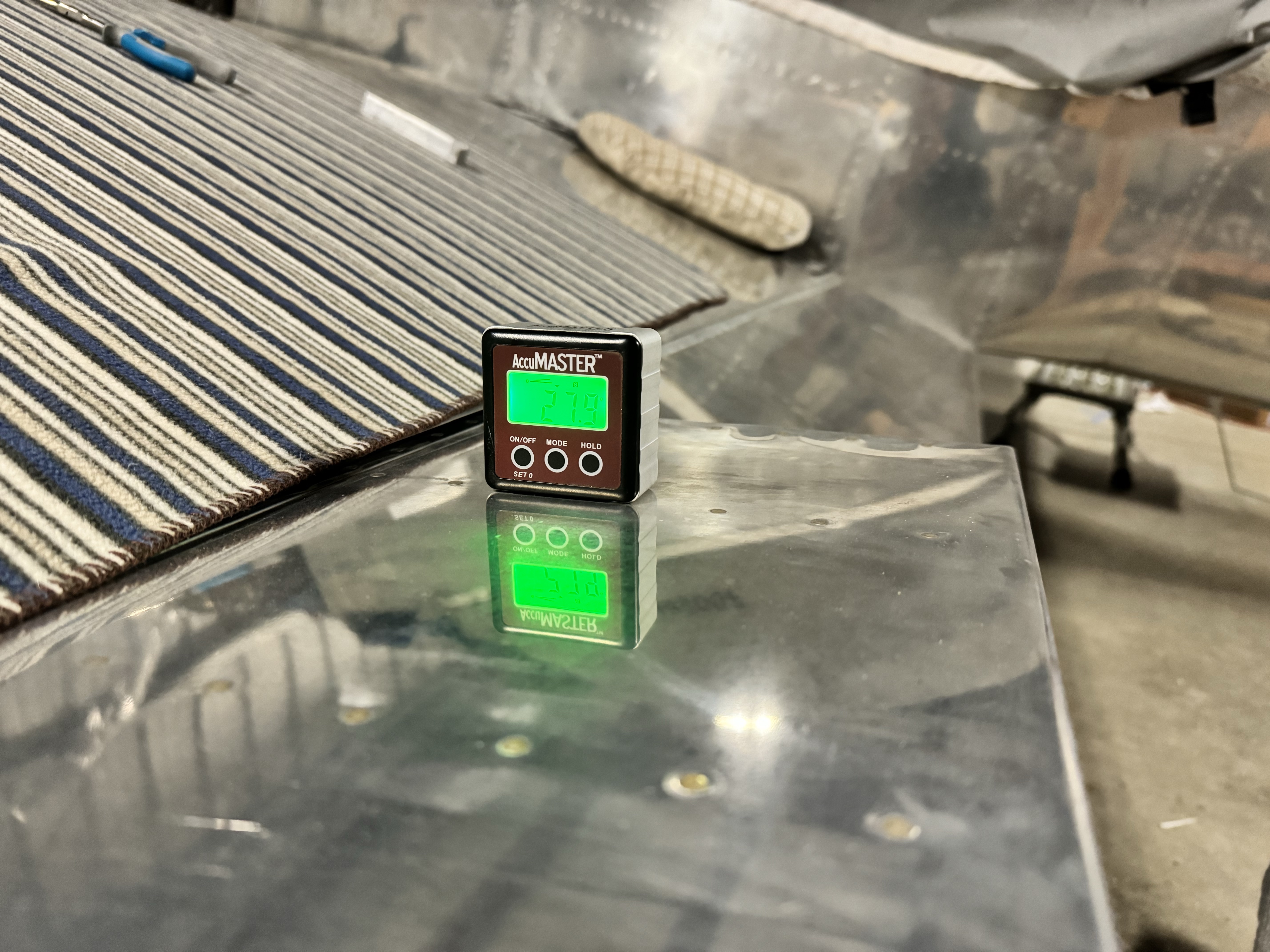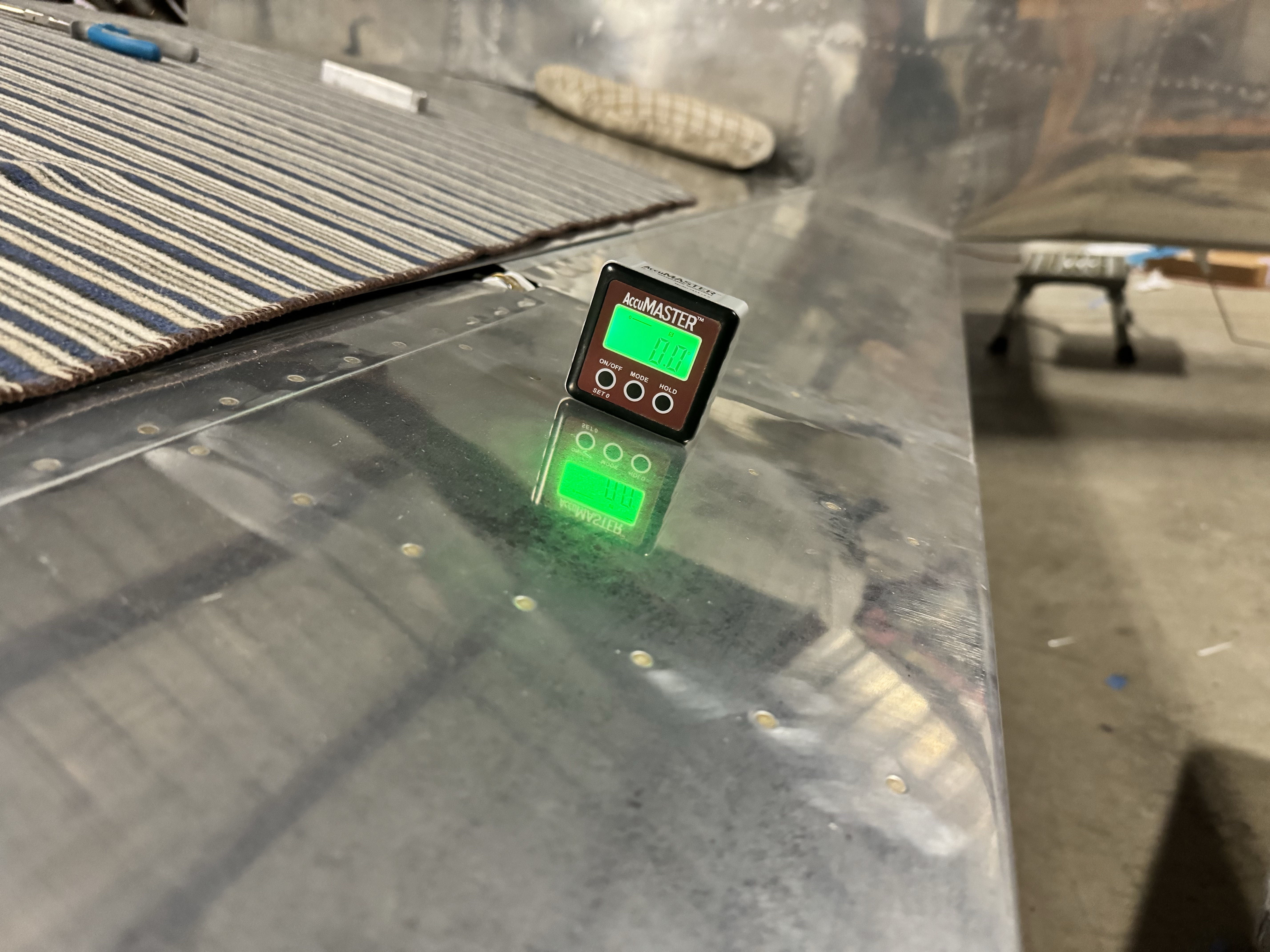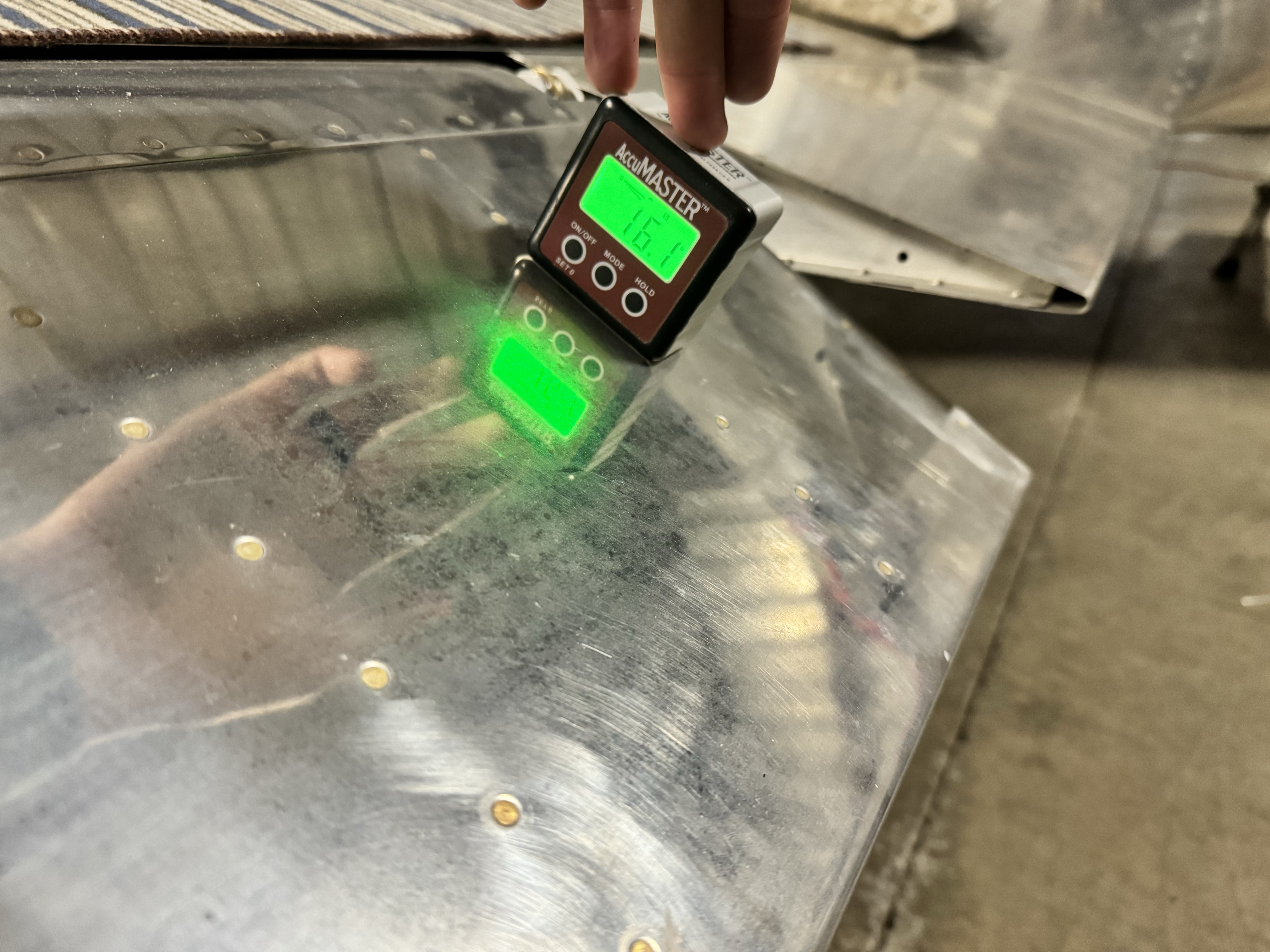 After fabricating and installing I measured the deflection angles – I have 28 degs up and 16 degs down for each aileron. The specifications call for a minimum of 25 deg up and 15 deg down, so I’m within the standard range.