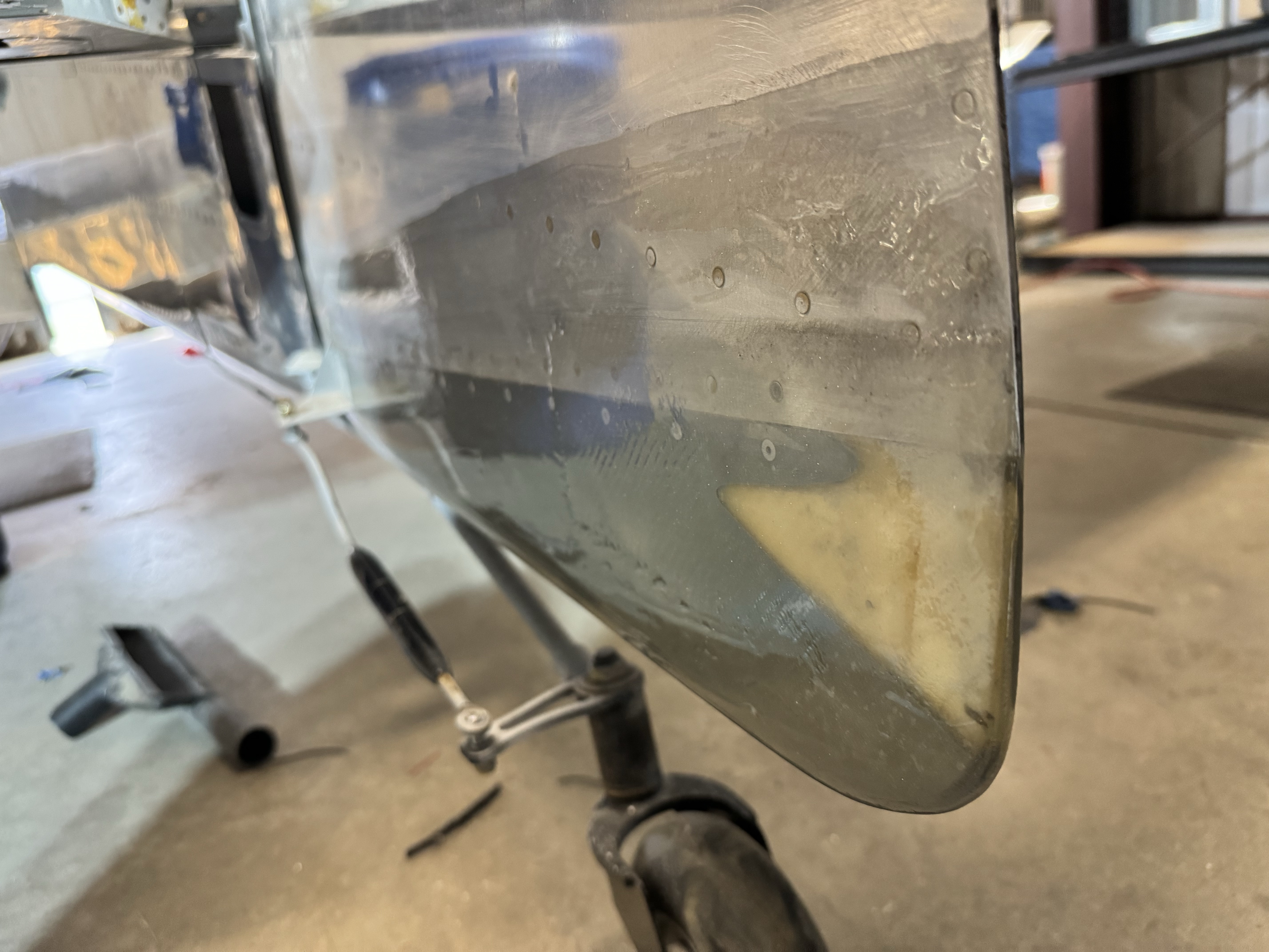 The last month has seen quite a lot of progress on lots of small items. Every trip to the hangar involves more fiberglass and epoxy sanding and finishing. The fiberglass tips for the whole tail are now complete, barring the horizontal and vertical stabilizer tips being primed. I also completed the lower rudder fairing, which needed to be modified because I’m not installing a rear tail light.