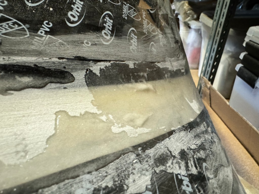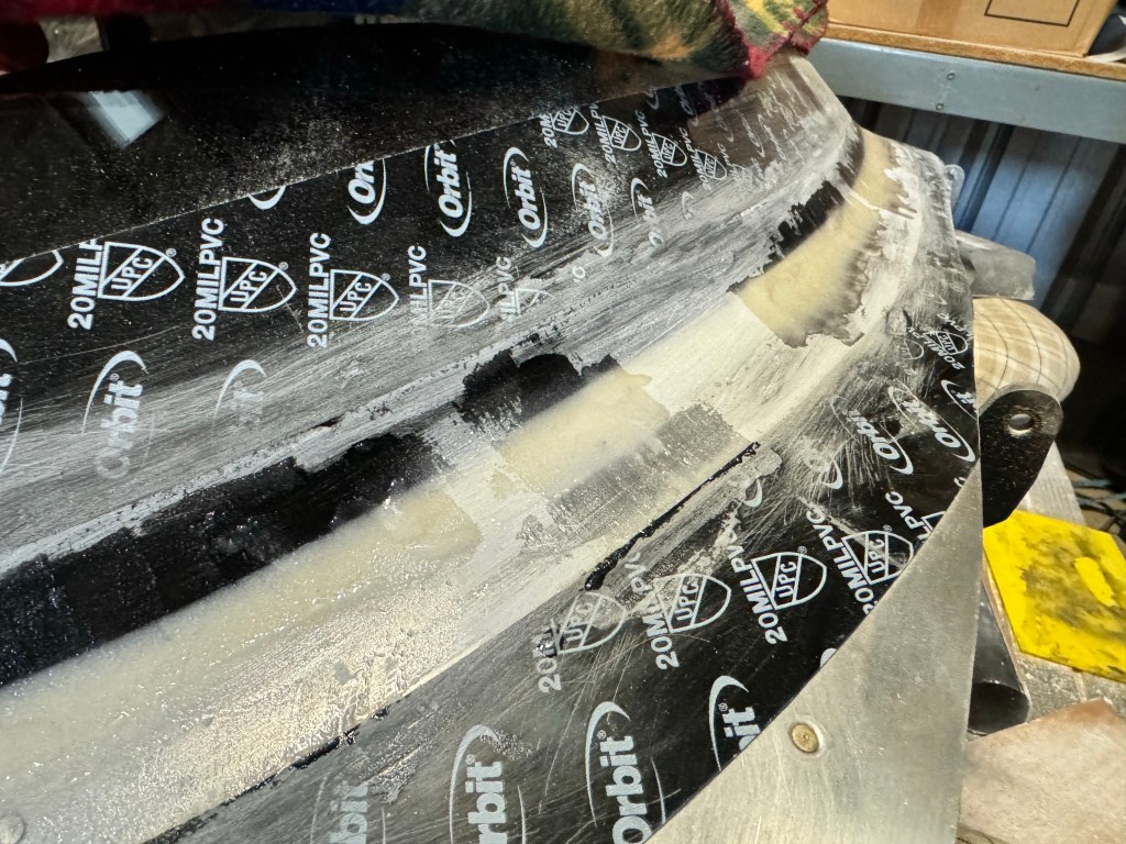I came back the next day and removed the peel-ply and then started sanding the surface. There were quite a lot of pits from the initial pass, so I mixed up a second batch and filled the gaps.