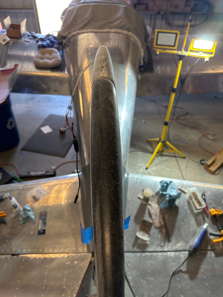 I also needed to redo the vertical stabilizer top fairing. After the epoxy cured and everything was sanded, the rudder and the fairing were slightly misaligned. I removed the fiberglass gap fairing and re-did the layup, clamping the rudder and the fairing together to ensure proper alignment.