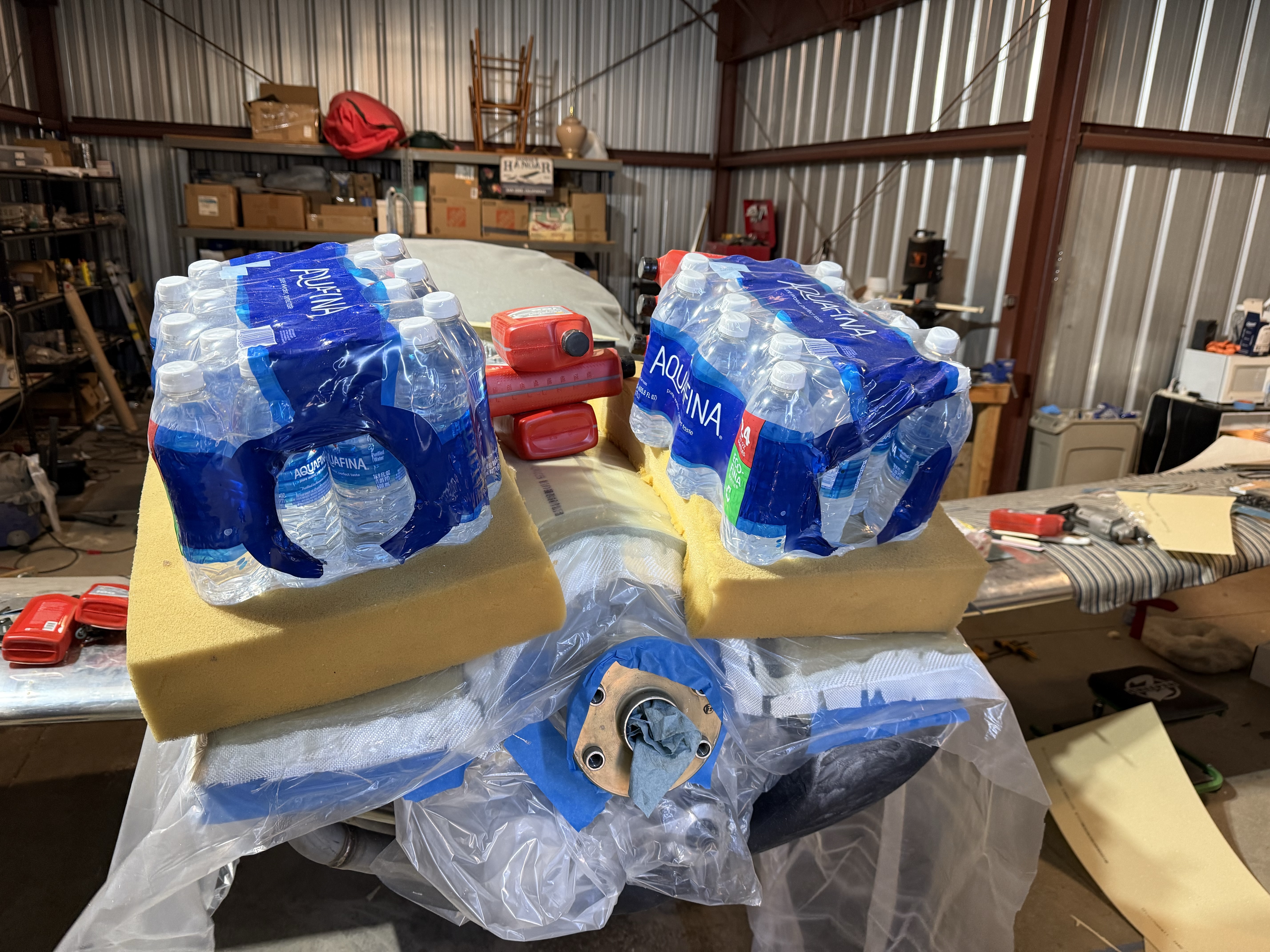We then weighed the entire thing down using some foam to distribute the load then left it to cure overnight.