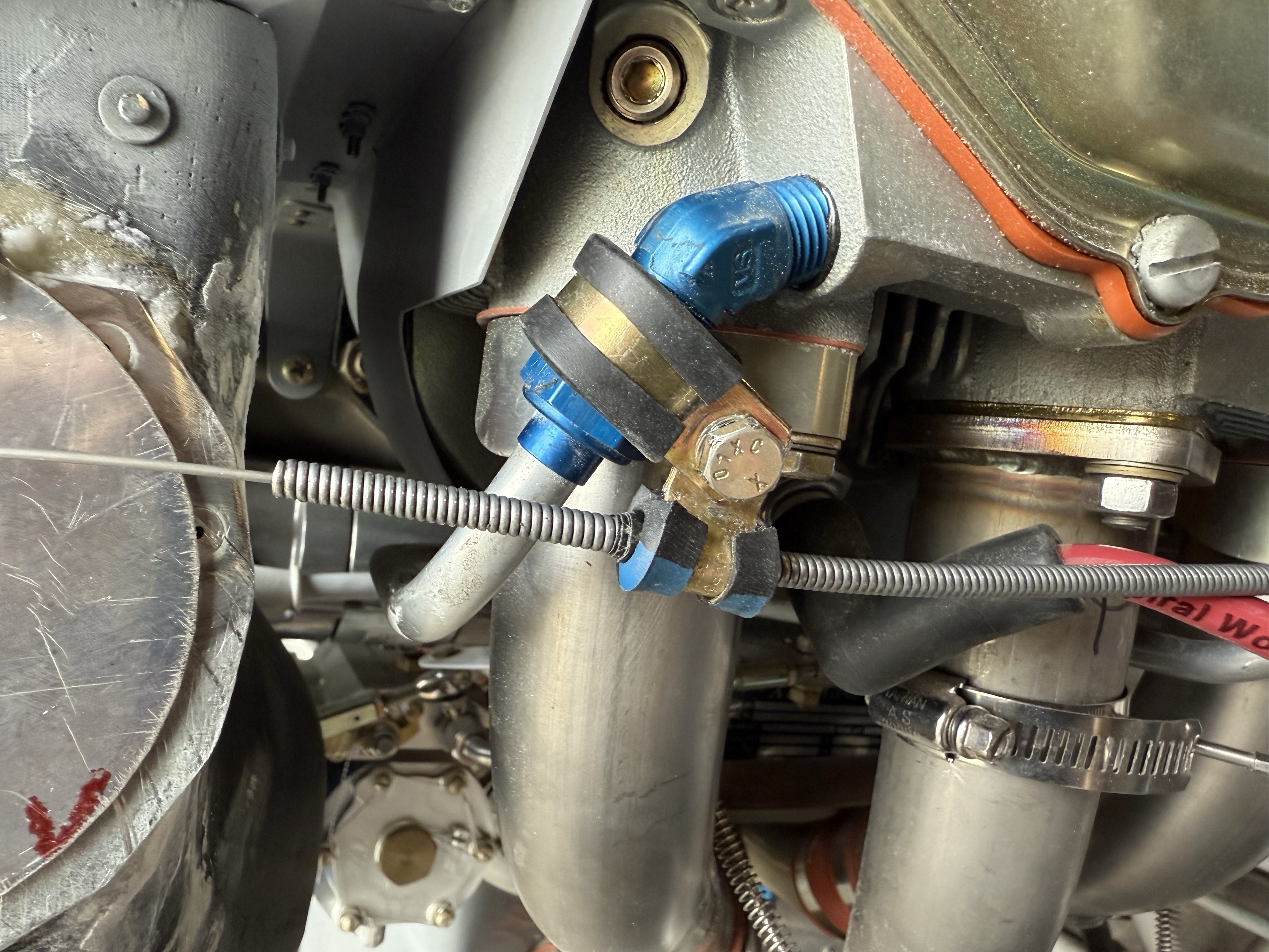 The actual intake bypass is is a 2-5/8″ hole. It has a flange that gets riveted to the snorkel, and then the valve is attached to with a nutplate and is secured at the top.