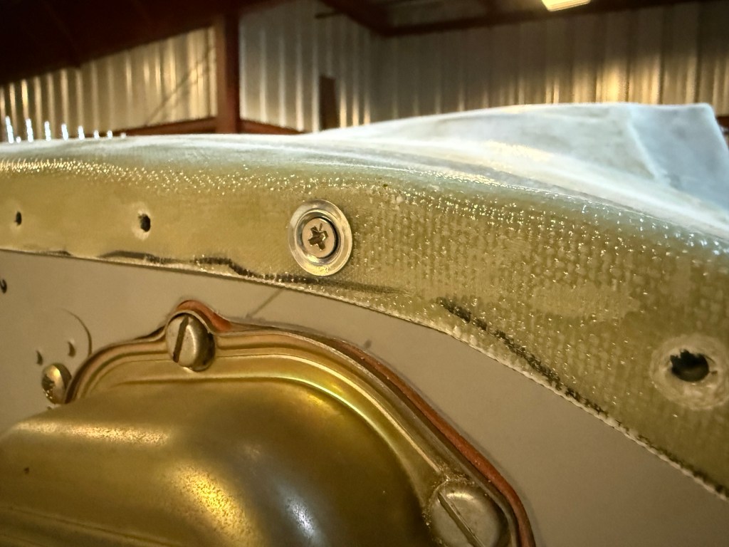 Another angle. I decided to counter sink and use the washers to help distribute the load of the pressure within the plenum. The total force inside the plenum could be a couple hundred pounds when I am in cruise, so I wanted to ensure that the plenum is securely attached to the baffles.