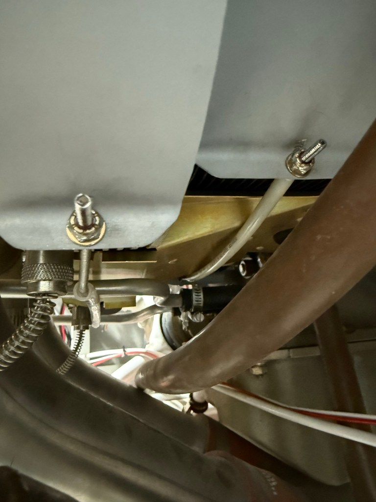 The plastic tubes will protect the stainless steel from abrading the oil return lines if they end up making contact. I may adjust things in the future if anything gets too close. (This picture reminds me I need to secure the propeller oil line (brown) and the alternator wires (red/white) ).