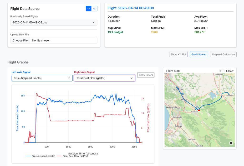 In doing all this flight testing I developed a python and web based analysis tool to help me plot and process the data that my Dynon SkyView HDX records.