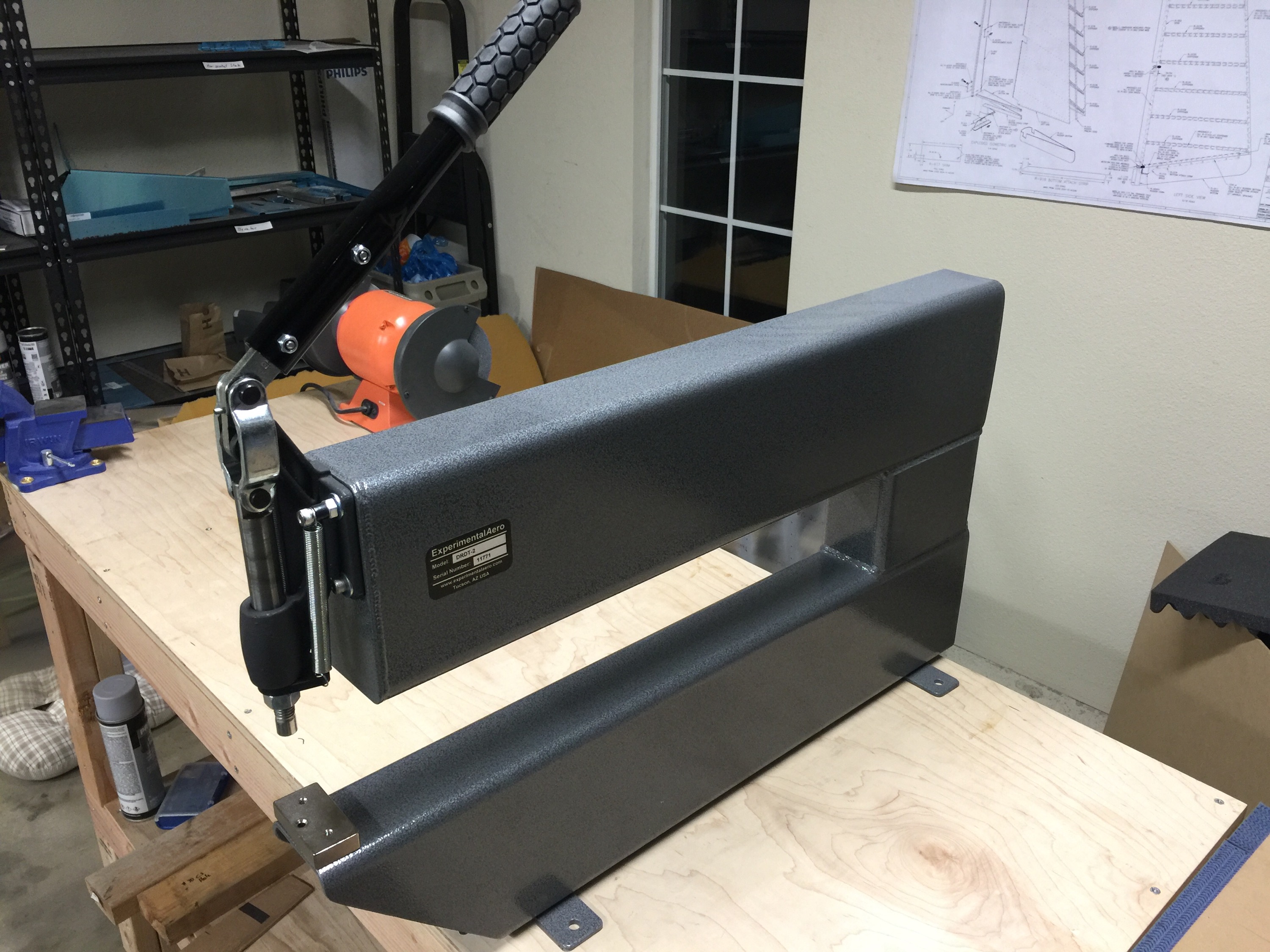 This is the pneumatic squeezer. It’s excellent at setting perfect rivets every time. The project can get completed without one, but why suffer.